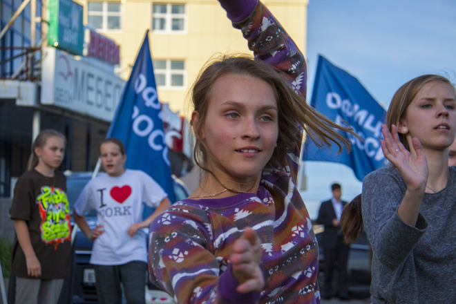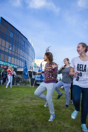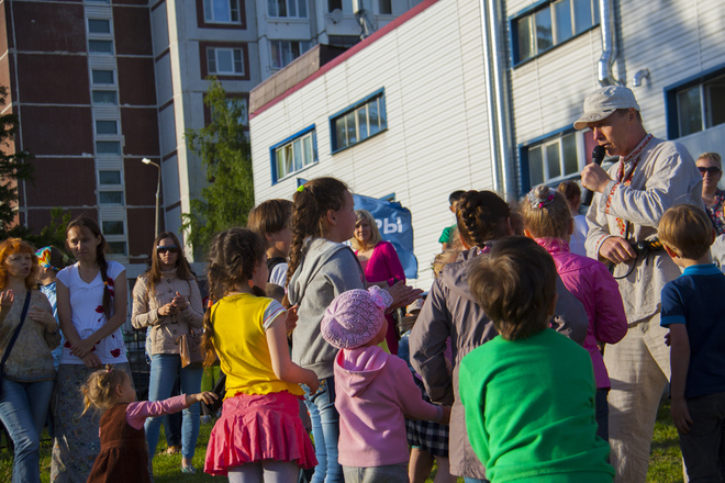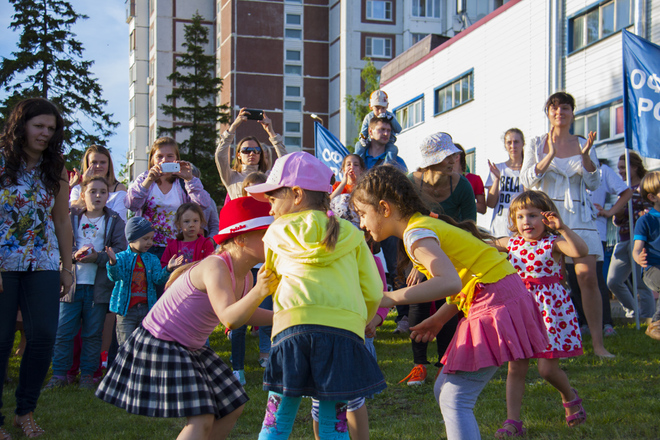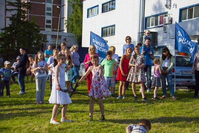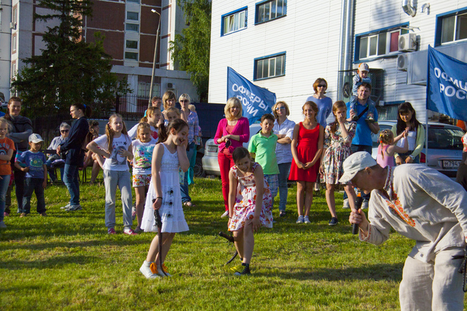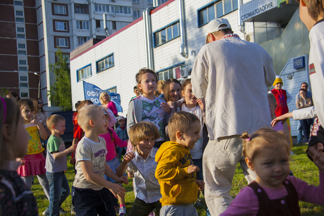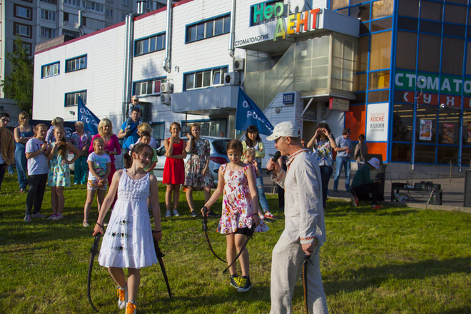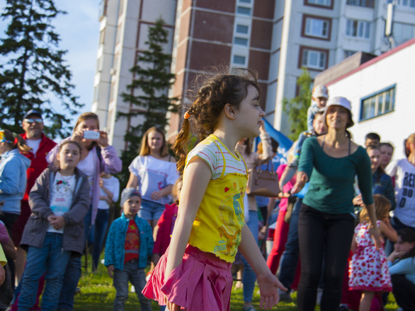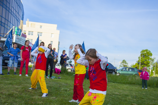В программу праздника входили народные игры для всех желающих, отчетный концерт студии, групповое разучивание танца «Сибирская кадриль». Мастер-класс проводили преподаватели международного класса. Дети и взрослые с удовольствием все вместе танцевали, пели, веселились от души.
