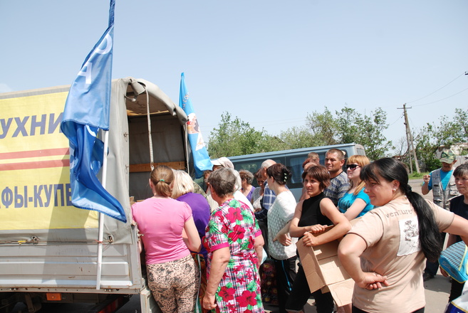 Участники поездки, уже не раз побывавшие в зоне гуманитарной катастрофы, были знакомы с масштабами трагедии и знали о конкретных нуждах местных жителей и учреждений. Так, для детского дома в Снежном были приобретены продукты питания, художественная литература, канцелярские товары, а в техникум – оборудование для котельной, собранное коллективом ОАО «Раменская теплосеть» под руководством А.М. Синицкого. В госпиталь Дебальцево доставили медикаментов на 500 тыс. рублей, инвалидную коляску, продукты. В Кировский храм, полностью разрушенный от прямого попадания снаряда, о. Андрей Козорезов передал церковную литературу, утварь, продукты, теплые вещи. Самая массовая акция раздачи продуктов питания и одежды прошла в селе Никишино, которое больше всего пострадало в результате боевых действий. Члены экспедиции оказывали и моральную поддержку жителям.