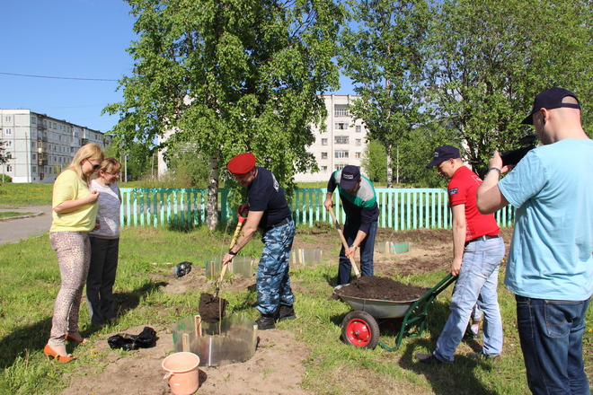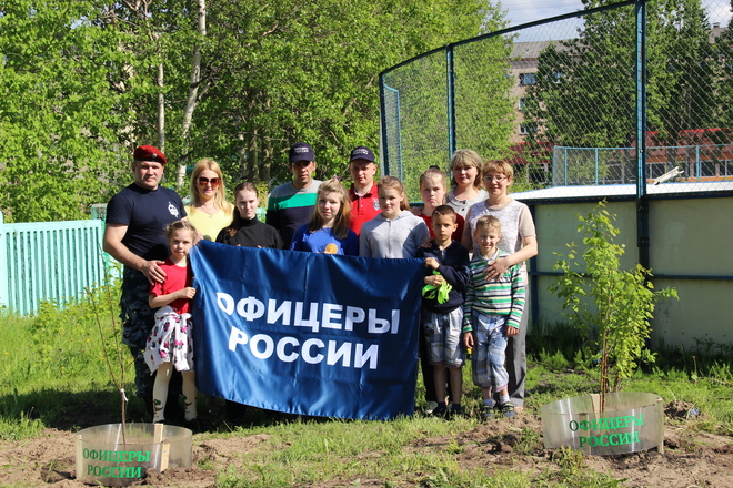 «ОФИЦЕРЫ РОССИИ» Архангельской области высадили деревья и кустарники на территории детдома «Олененок»