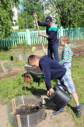 Территорию учреждения украсили саженцы груши, алычи, яблони, сливы, вишни, смородины, сирени и ирги. Настоятель храма в честь Владимирской иконы Божией Матери г. Северодвинска, иерей Анатолий освятил каждый саженец перед посадкой, для плодородия и процветания. Воспитанники детского дома активно включились в работу, каждый из них внес свой вклад в это доброе и благородное дело. Помимо саженцев ребята помогали высаживать цветы, приобретенные региональным отделением. Клумбу в виде солнца они назвали «Наше солнечное завтра».