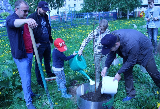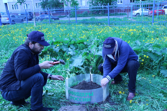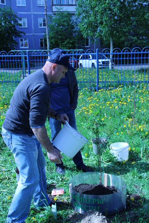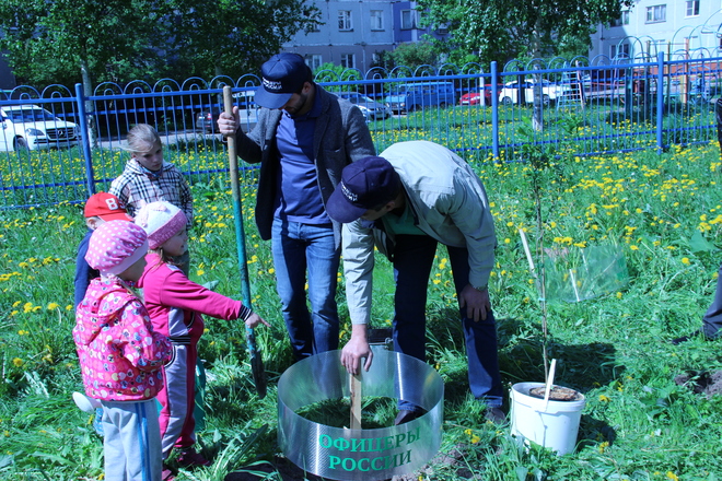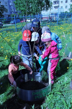 В Международный день защиты детей представители регионального отделения «ОФИЦЕРОВ РОССИИ» Архангельской области преподнесли подарок северодвинскому детскому саду «АБВГДейка» – высадили деревья на его территории.