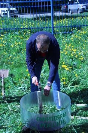 Активное участие в праздничном мероприятии приняли маленькие воспитанники детского сада, помогая держать саженцы при посадке и поливая уже посаженые деревья. При входе на территорию детского сада радует глаз – прекрасная клумба, посадочный материал для которой также был приобретен региональным отделением «ОФИЦЕРОВ РОССИИ».