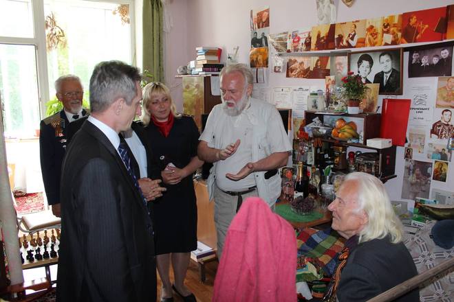 Делегация в составе представителей Центра социальной и правовой защиты «ОФИЦЕРОВ РОССИИ», Совета ветеранов, Общественного совета и сотрудников УВД по ЗАО Москвы посетили Всероссийский научно-методический геронтологический центр. Они поздравили с 90-летним юбилеем и 70-й годовщиной Великой Победы Ивана Никитовича Идоленко.