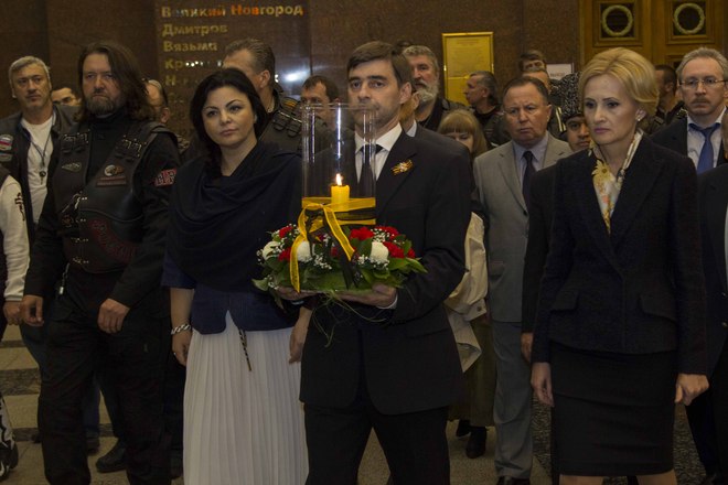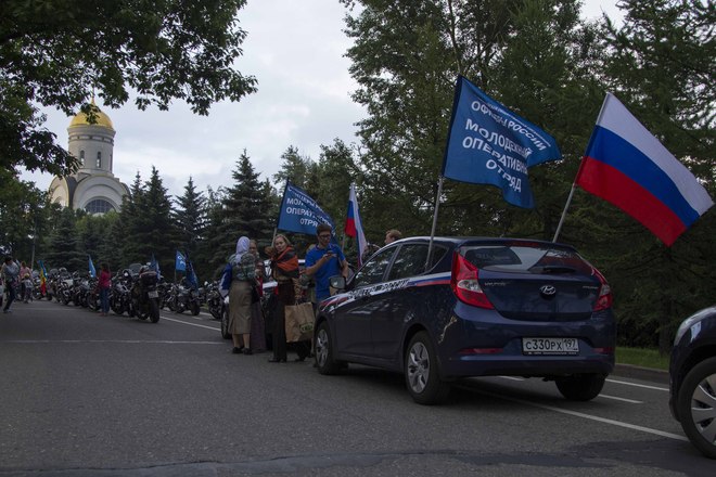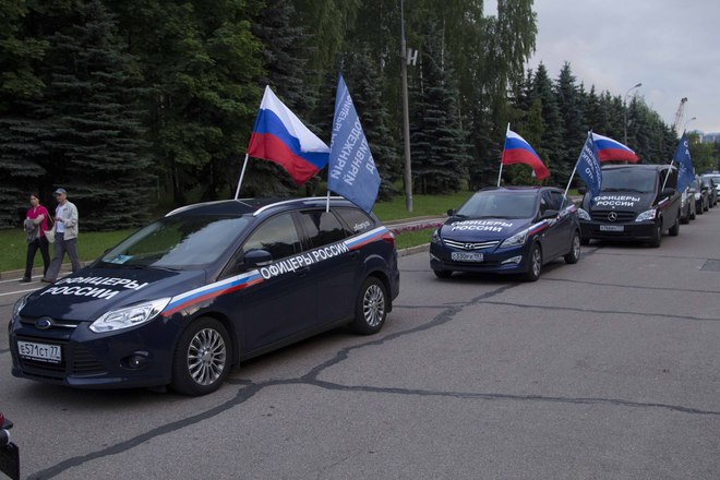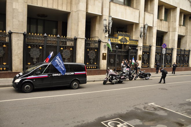 Затем процессия со свечами отправилась к Центральному музею ВОВ на Поклонной горе в сопровождении байкеров. В колонне были представители «ОФИЦЕРОВ РОССИИ» и Оперативного молодежного отряда нашей организации.