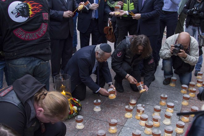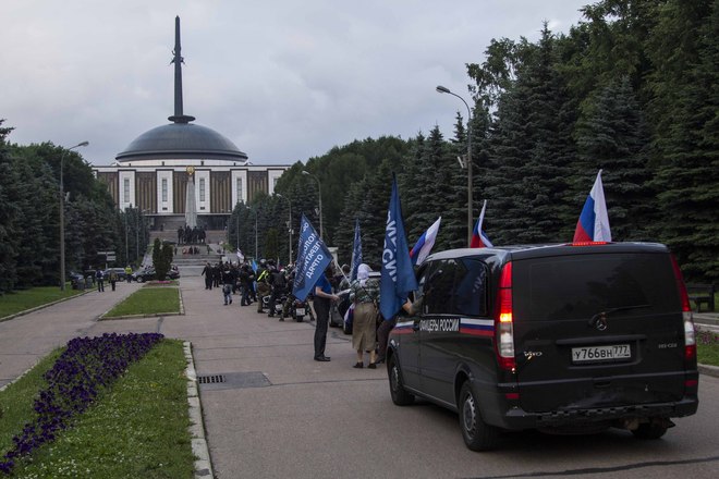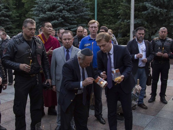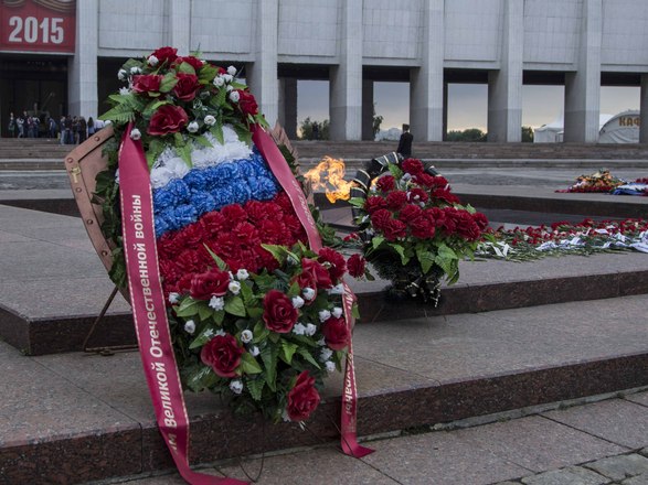 На Поклонной горе ветераны, активисты общественных организаций, депутаты Госдумы и Мосгордумы, мотоциклисты клуба «Ночные волки» и все желающие возложили цветы и зажгли памятные свечи у мемориала «В борьбе против нацизма мы были вместе». На мероприятии звучали песни военных лет, стихи, выступали детские хореографические коллективы. Организаторы объявили минуту молчания и провели митинг.