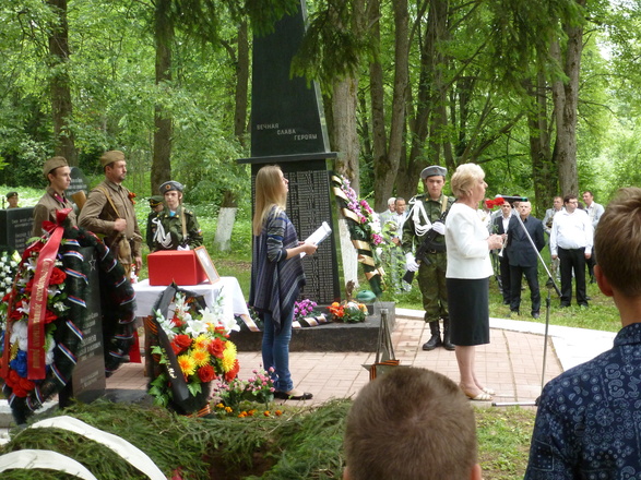 Перед присутствующими выступила глава сельского поселения Луневское Надежда Тютина, которая рассказала историю поисков погибшего военного летчика. Председатель районного Совета ветеранов Николай Сотниченко вспомнил те годы, когда на солнечногорской земле проходил рубеж обороны Москвы, и здесь началось контрнаступление советских войск в 1941 году. Председатель президиума местного отделения «ОФИЦЕРОВ РОССИИ», Герой Советского Союза Федор Пугачев отметил, что мы должны помнить о тех героях, которые защитили мир ценой своей жизни. Настоятель сельского храма отец Александр, отслужил панихиду. Председатель поискового объединения «Плацдарм» Смирнов Константин рассказал о работе поисковиков и поблагодарил всех, кто занимается благоустройством братских захоронений. После чего все присутствующие возложили живые цветы к памятнику героям.