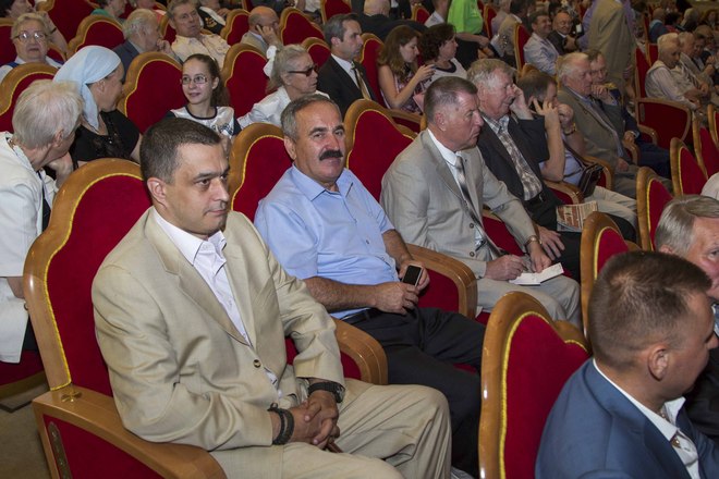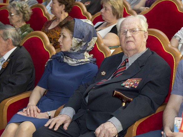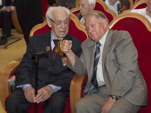 Член Совета Федерации ФС РФ, председатель Московского городского Совета ветеранов Владимир Долгих сообщил, что ветеранским сообществом учрежден памятный знак «70 лет Великой Победы». По поручению фронтовиков он вручил этот знак Патриарху за первосвятительский труд по духовному укреплению России.