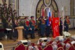 Предстоятель Русской Православной Церкви обратился к собравшимся с первосвятительским словом, после чего передал участникам встречи иконы святого великомученика Георгия Победоносца.