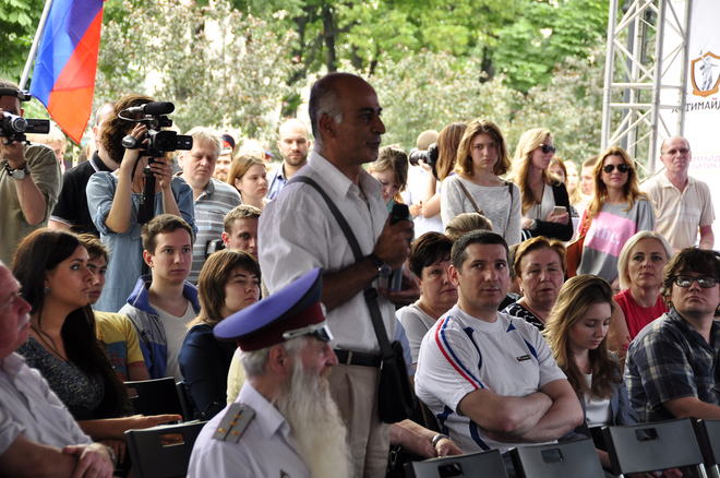 Презентацию первого доклада проекта «Антимайдан-Аналитика» посетили около 500 человек, среди которых были мотоциклисты клуба «Ночные волки», представители организаций «ОФИЦЕРЫ РОССИИ» и «Боевое братство», партии «Великое Отечество», казаки Центрального казачьего войска, студенты, жители и гости столицы.