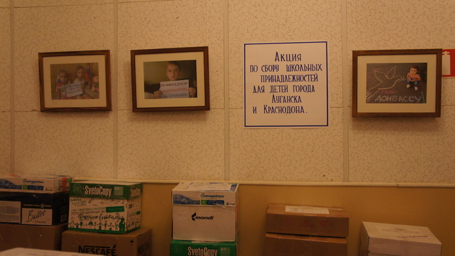 В рамках благотворительных акций «День знаний в Новороссии», «Дети Поморья – детям Донбасса», «Дети Поморья – детям Луганска и Краснодона» в Архангельске был организован сбор канцелярских принадлежностей для ребят на юго-востоке Украины.