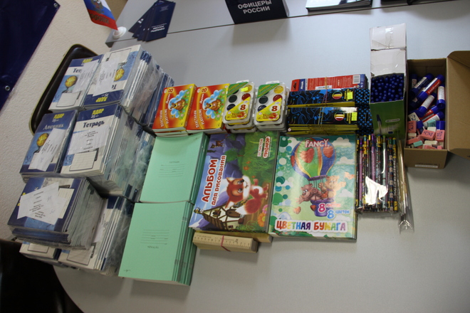 В благотворительной акции активное участие принимали члены регионального отделения «ОФИЦЕРОВ РОССИИ» в Архангельской области – ответственный секретарь президиума Владимир Уткин, заместитель председателя исполкома Павел Тяпкин, члены исполкома Данила Флуераш и Роман Самухин, активисты Владислав Зеньков и Евгений Звягин. Представители нашей организации приобрели и собрали школьные тетради, дневники, ручки, карандаши, краски, альбомы, пеналы, мелки, ластики, линейки – все необходимое для того, чтобы собрать детей в школу. Всего было собрано почти две тонны канцелярских товаров.