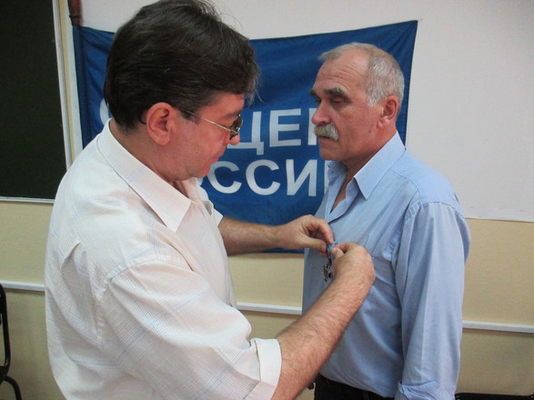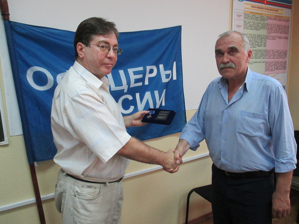 В ходе заседания председатель президиума местного отделения «ОФИЦЕРОВ РОССИИ» Подольска, депутат Совета депутатов городского округа Подольск, полковник запаса Валерий Файзулин вручил медаль «За офицерскую честь» ветерану органов внутренних дел России, подполковнику запаса Виктору Горельцеву.