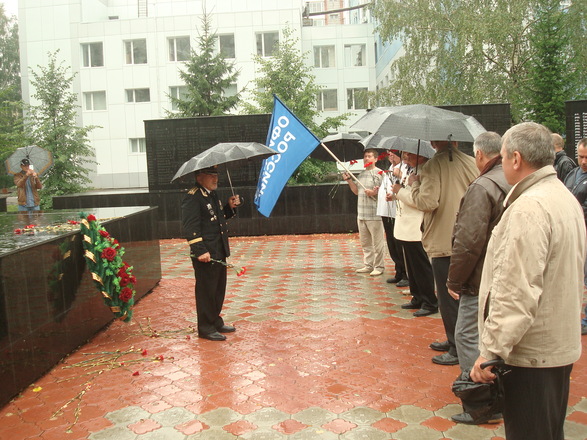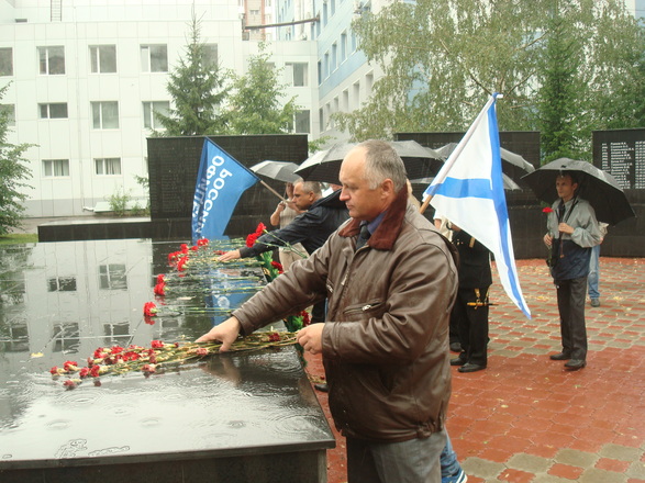 Участники митинга почтили память погибших моряков-томичей минутой молчания и возложили цветы к подножию памятника.