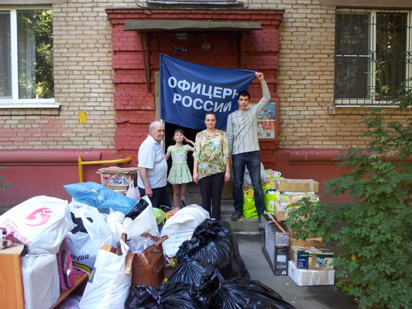 29 июля член Совета по региональной деятельности «ОФИЦЕРОВ РОССИИ» Константин Рассолов и активисты регионального отделения нашей организации в Москве Жанна Панкратова, Вадим Олари, Ольга Шеховцова и Олег Бакулин помогли перевезти и разместить в Калуге семью беженцев из Донецкой народной республики. Они также собрали и привезли для беженцев гуманитарную помощь.