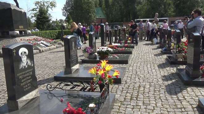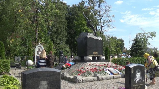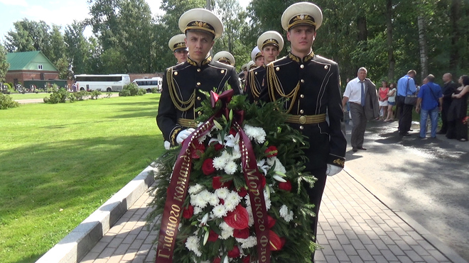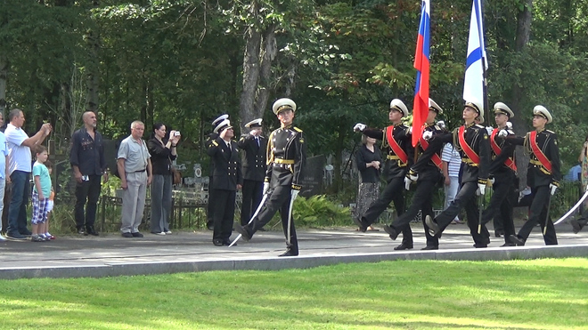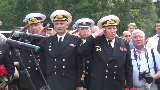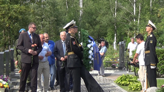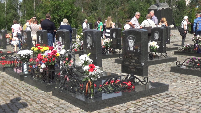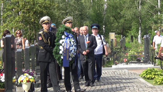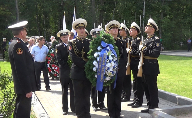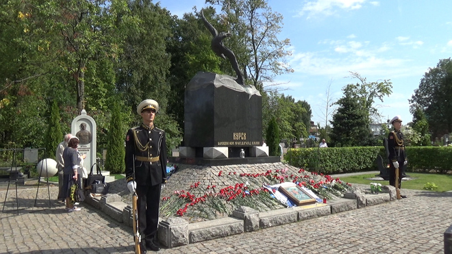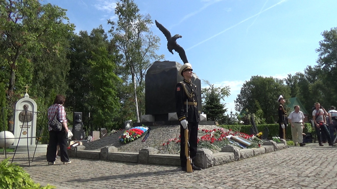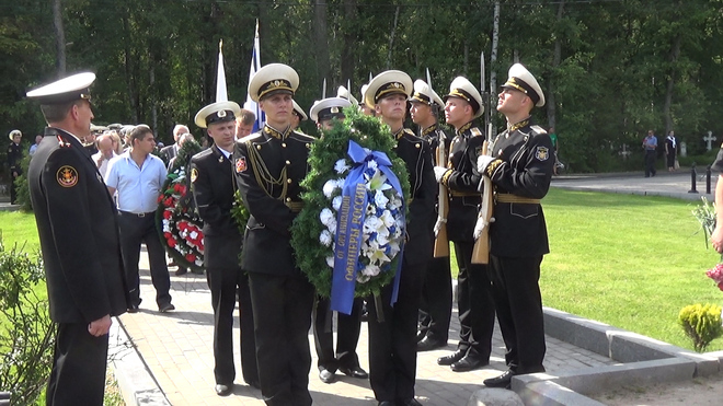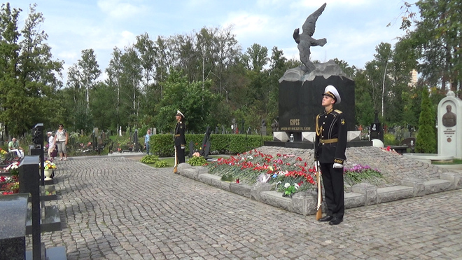 В траурной церемонии на Серафимовском кладбище приняли участие представители регионального отделения «ОФИЦЕРОВ РОССИИ». От нашей организации к мемориалу погибших моряков был возложен венок. В 2000 году здесь были похоронены 32 подводника из экипажа «Курска».