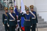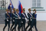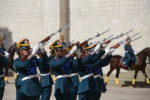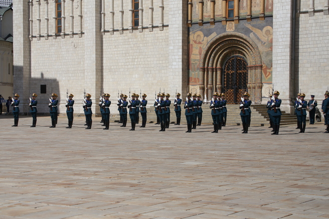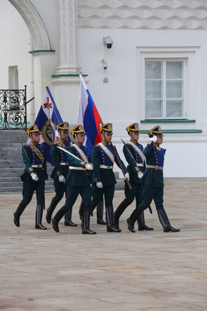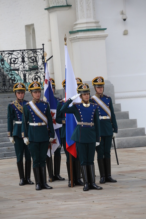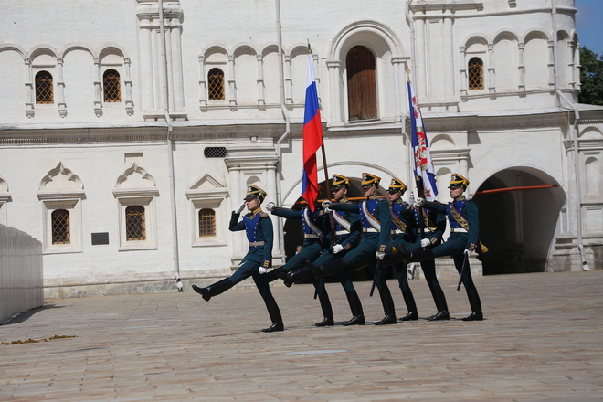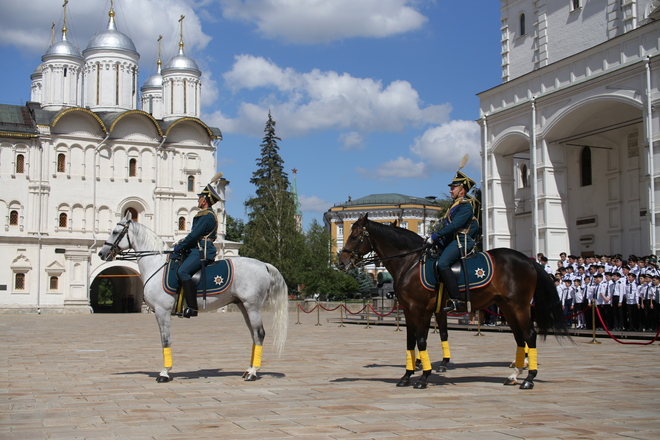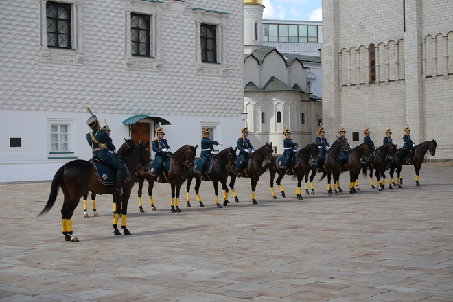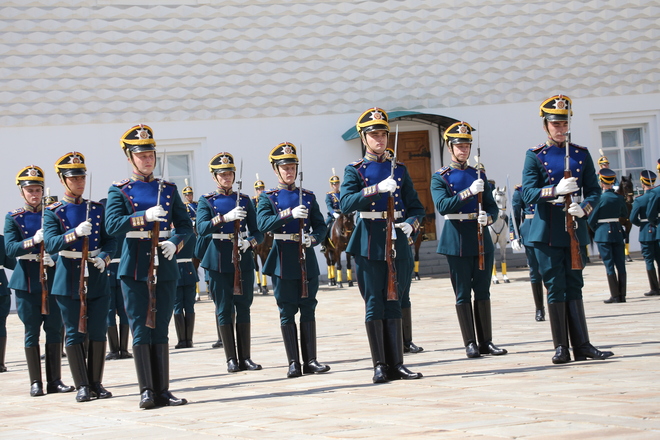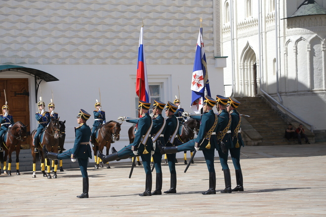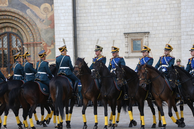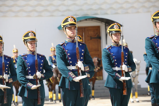 Перед участниками церемонии выступил Президентский полк, который продемонстрировал развод пеших и конных караулов.