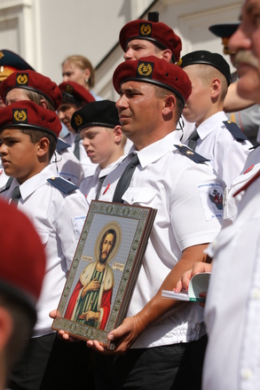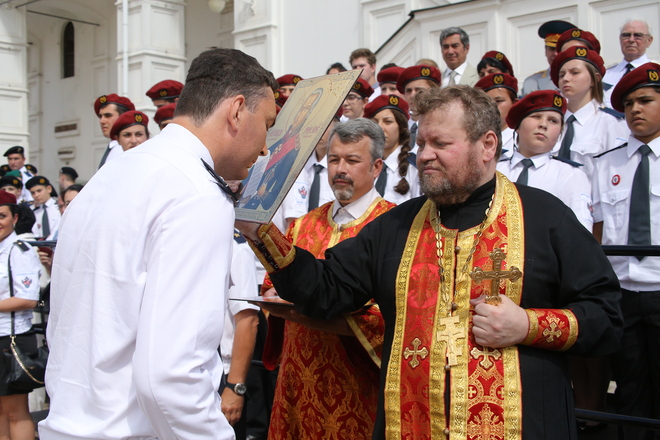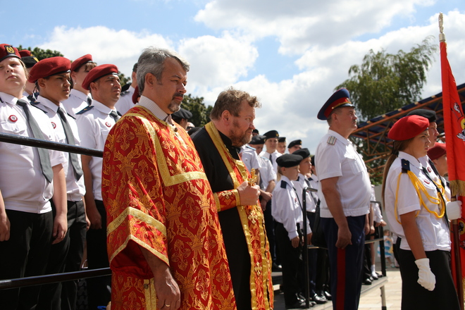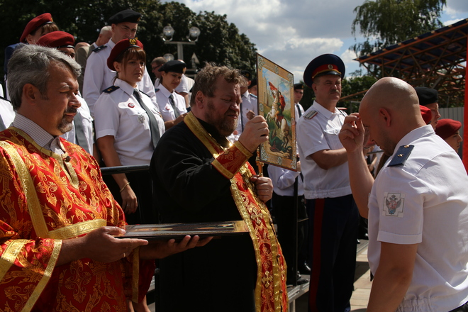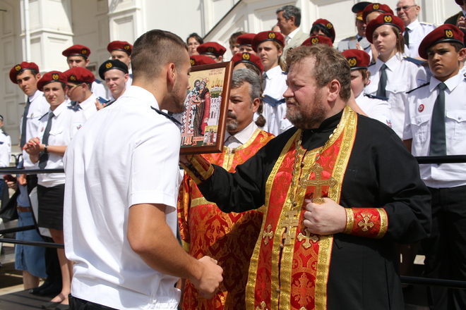 По традиции был совершен православный молебен, затем отрядам «Витязей» вручили иконы.