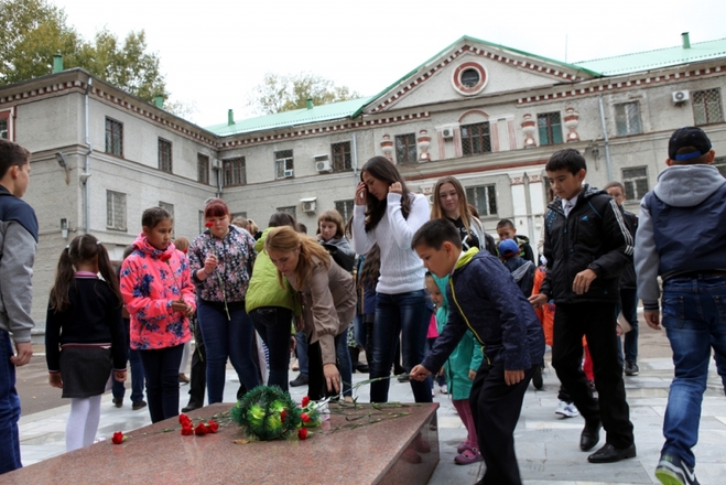 Встреча ребят началась с возложения цветов к стеле памяти сотрудников башкирского МВД, погибших при исполнении служебного долга. Память отцов и боевых товарищей ребята и руководство министерства почтили минутой молчания.