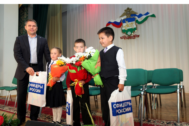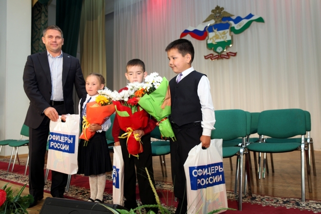 Дети получили подарки от регионального отделения «ОФИЦЕРОВ РОССИИ» в Республике Башкортостан. От имени «ОФИЦЕРОВ РОССИИ» с предстоящим учебным годом школьников поздравил руководитель исполкома регионального отделения Рустэм Курмаев.