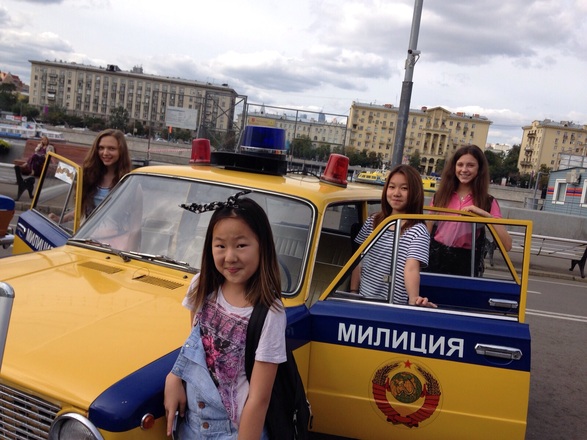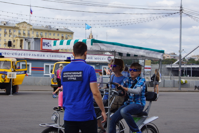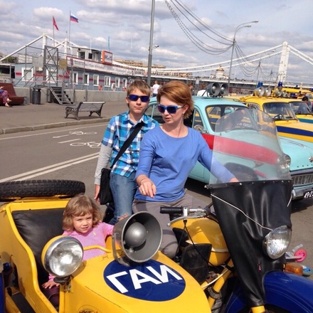 На площадке парка развернулась выставка ретро-автомобилей столичной Госавтоинспекции. Каждый желающий мог рассмотреть раритетные экспонаты и сфотографироваться на память.