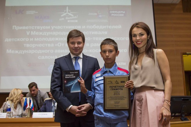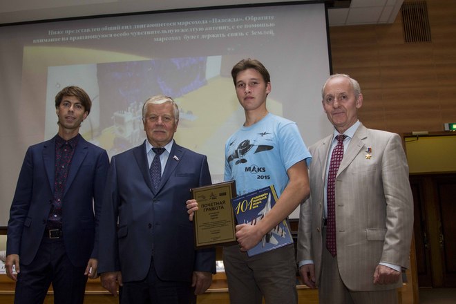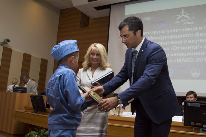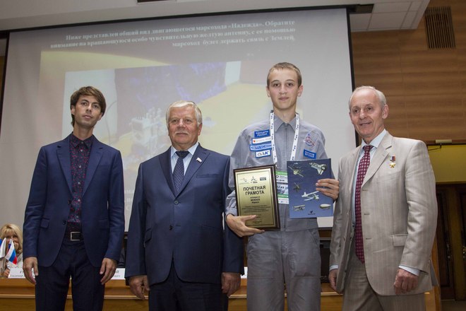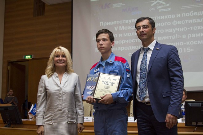 В ходе церемонии авторы лучших работ были отмечены почетными грамотами и призами в номинациях «Авиация», «Космонавтика», «Физика».