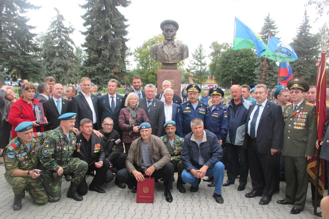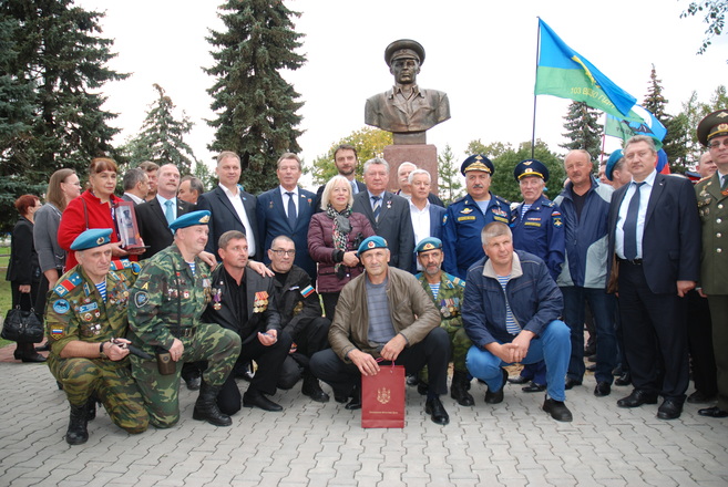 По окончании митинга Александр Маргелов и Виктор Неволин торжественно открыли бюст герою. Отдавая дань памяти легендарному генералу, перед бюстом прошли строем продолжатели его дела – военнослужащие ВДВ, после чего к подножию монумента легли цветы и венки.