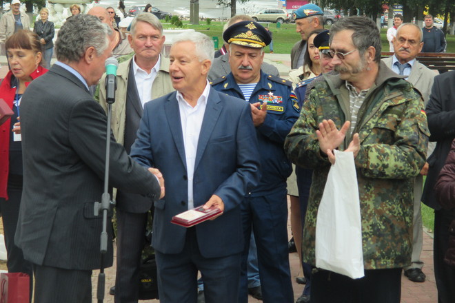 Александр Маргелов вручил главе Бронниц уменьшенную копию памятника десантника №1. Также от Фонда Маргелова он наградил юбилейными медалями «85 лет Воздушно-десантных войск» людей, которые внесли наибольший вклад в реализацию проекта по установке бюста Василию Маргелову. Автору проекта Михаилу Сердюкову вручены орден генерала армии Маргелова I степени и медаль поисковых отрядов «В память о народном ополчении».