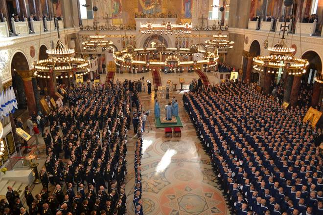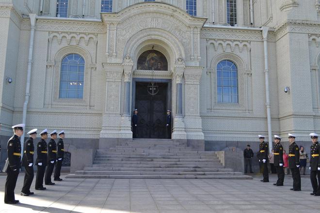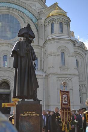 Церемонию открытия памятника предварила божественная литургия. Во время церемонии в кронштадский Морской собор был передан ковчег с мощями святого праведного Федорова Ушакова.
