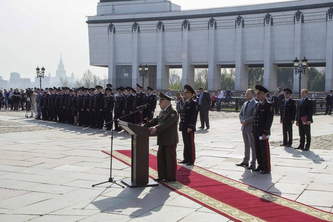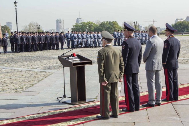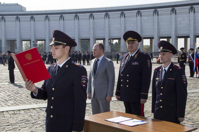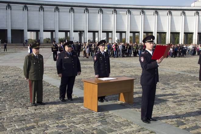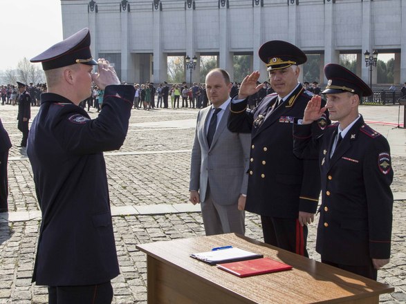 24 сентября на Поклонной горе в Москве состоялась торжественная церемония приведения к присяге выпускников Центров профессиональной подготовки столичной полиции – более 300 сотрудников. В таком масштабном формате мероприятие прошло впервые, по инициативе «ОФИЦЕРОВ РОССИИ», которую поддержал начальник ГУ МВД России Анатолий Якунин. До этого Центры проводили церемонии выпусков и приведения к присяге в местах дислокации, каждый сам у себя. «ОФИЦЕРЫ РОССИИ» предложили сделать общее мероприятие и проводить его на Поклонной горе, с обязательным участием руководства ГУ МВД.