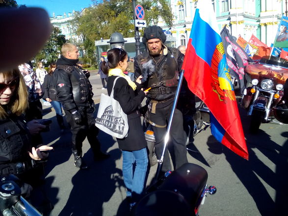 Байкеров представляли президент мотоклуба «Ночные волки» Санкт-Петербург» Илья Тарасов и президент мотоклуба «Ночные волки» Северо-Запад Алексей Ратник.