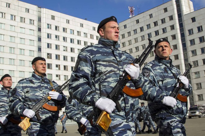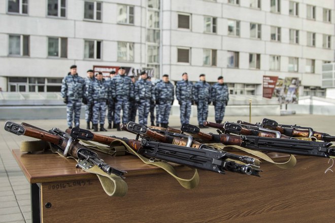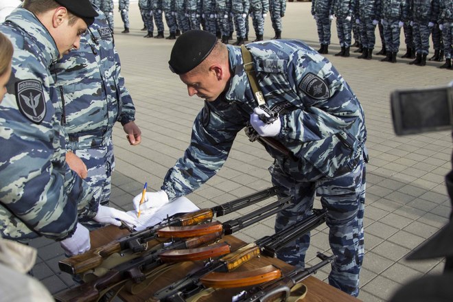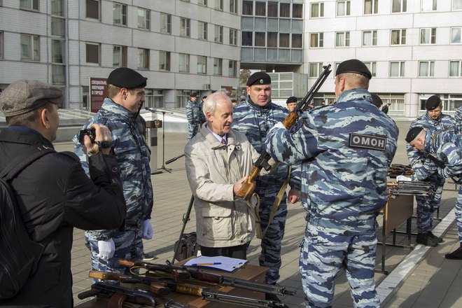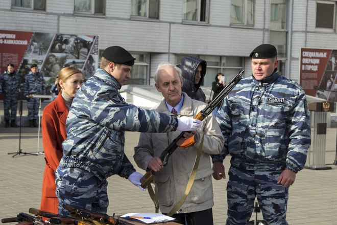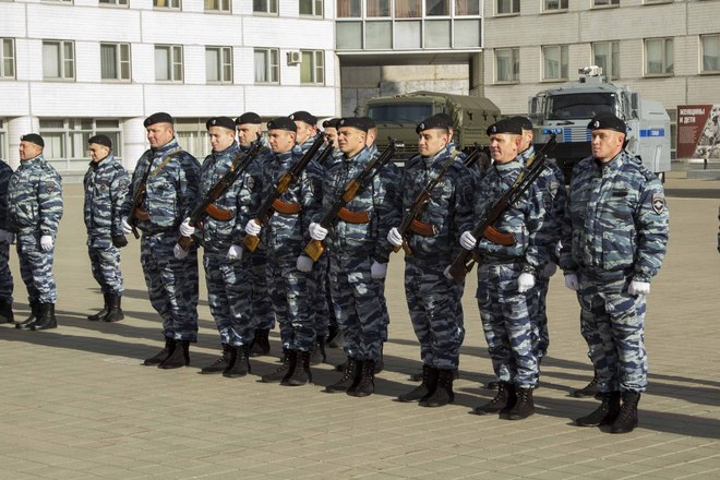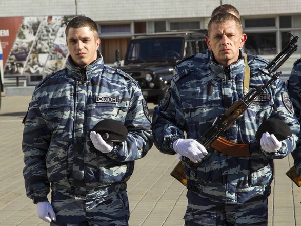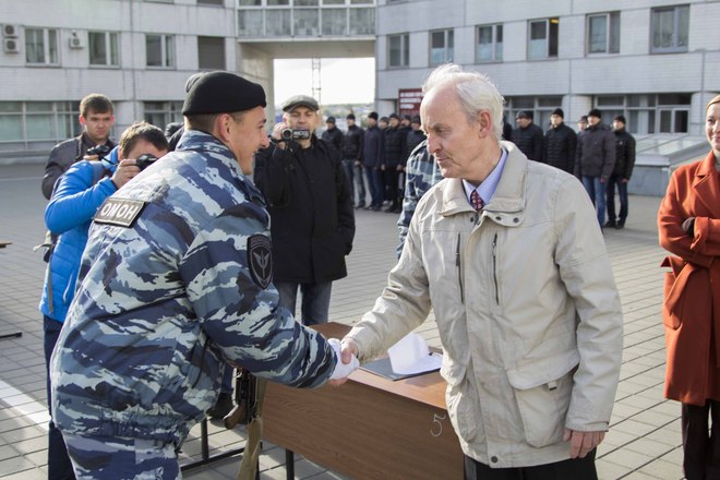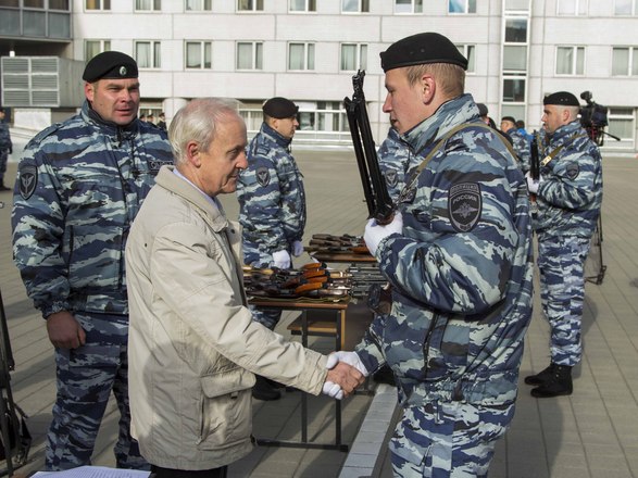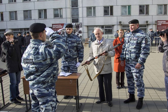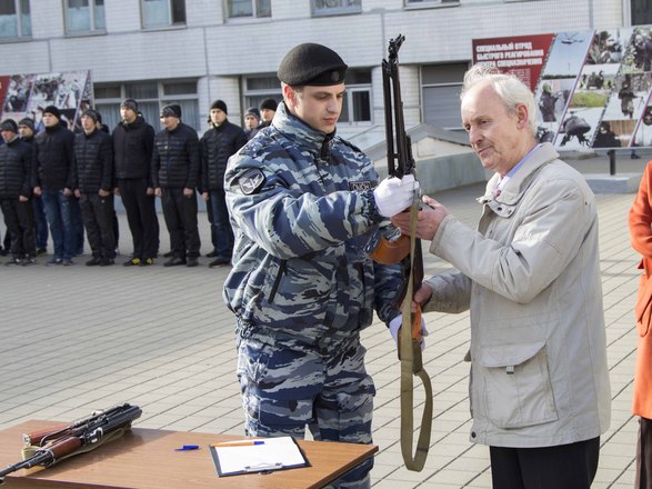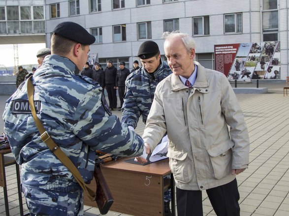 Церемония вручения оружия молодым сотрудникам ОМОН