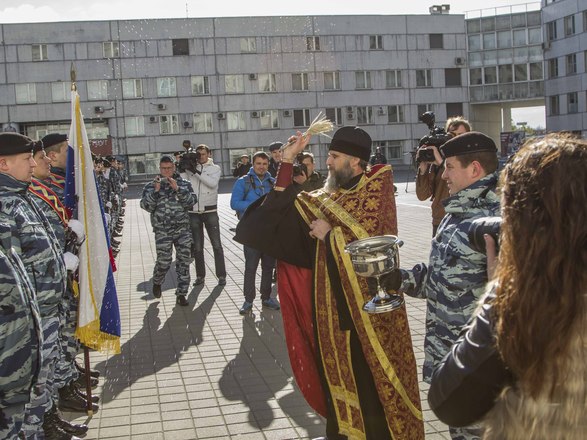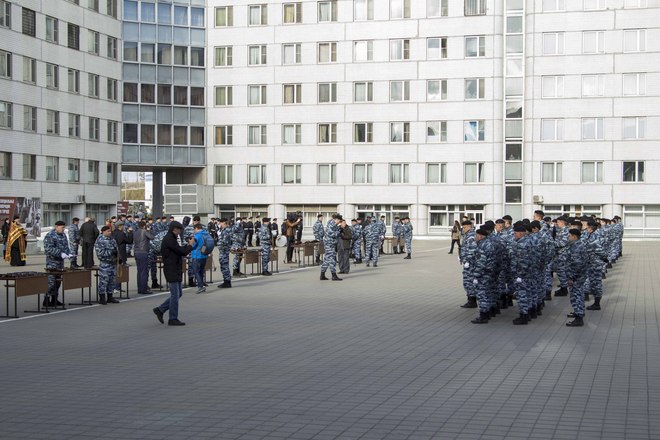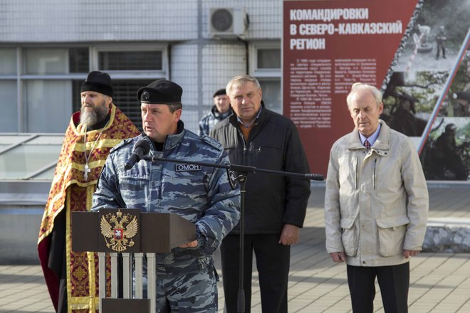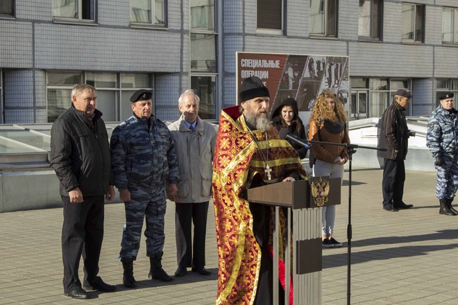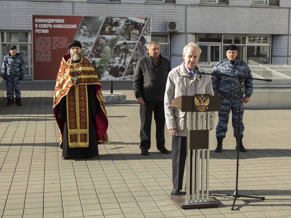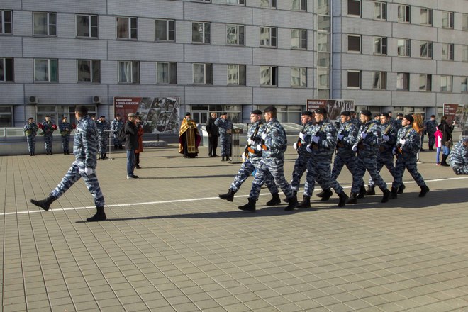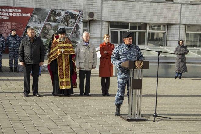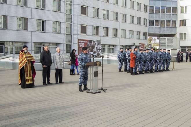 Со вступительной речью выступил первый заместитель командира ОМОН полковник полиции Олег Евсюков. Молодых полицейских также напутствовали почетные гости – председатель Совета мужества и отваги «ОФИЦЕРОВ РОССИИ», Герой России Сергей Нефедов, председатель совета Фонда поддержки ОМОН Геннадий Смирнов, настоятель Храма Дмитрия Донского отец Владимир.