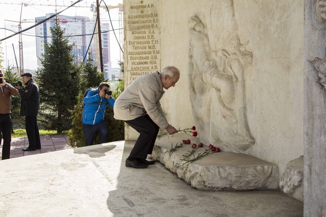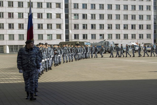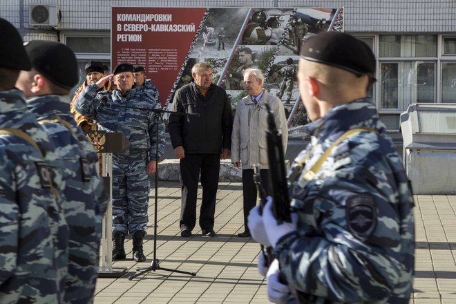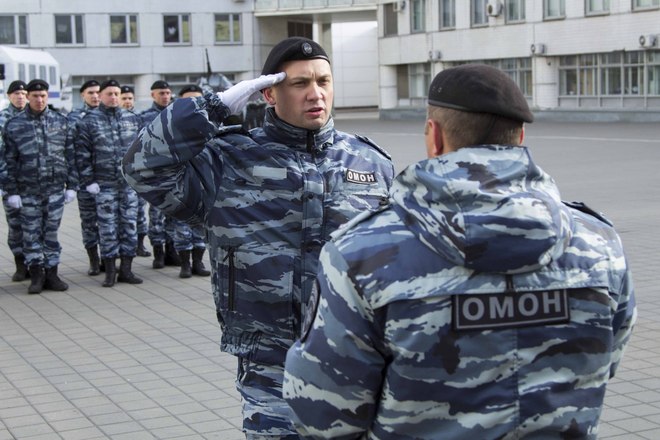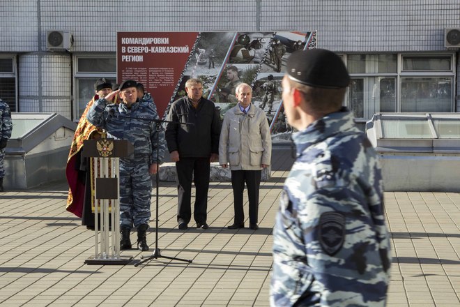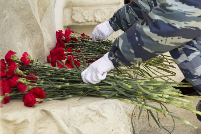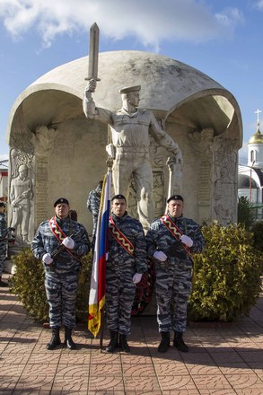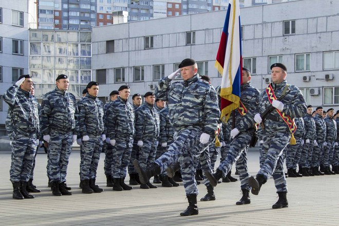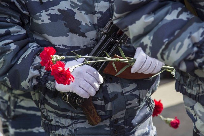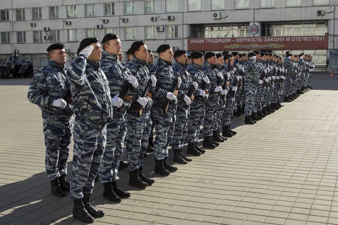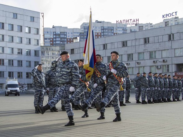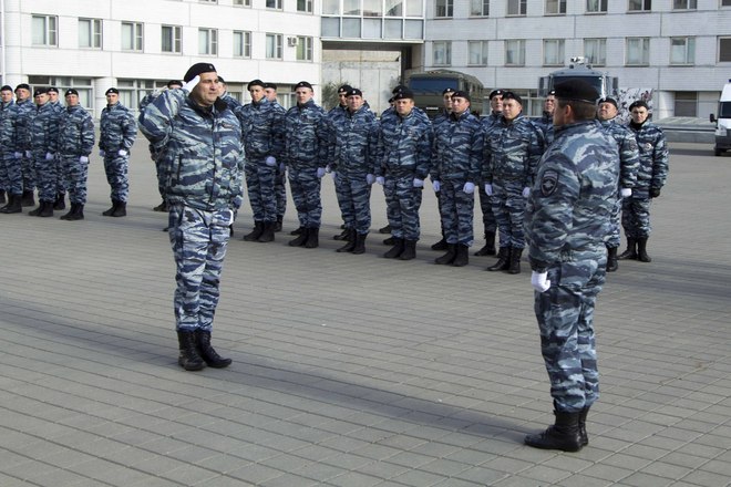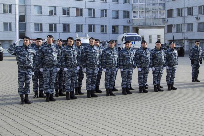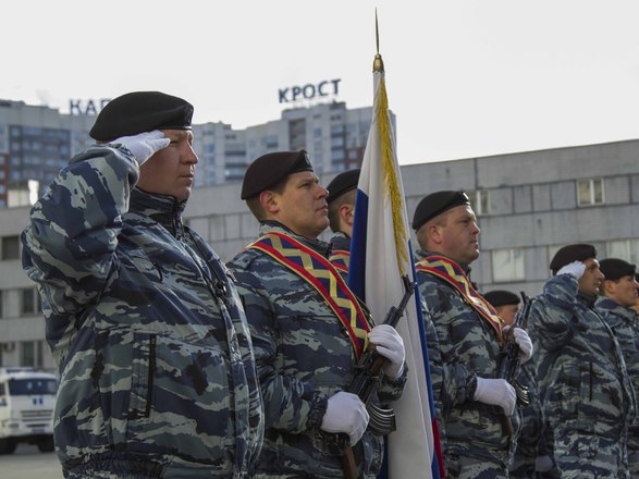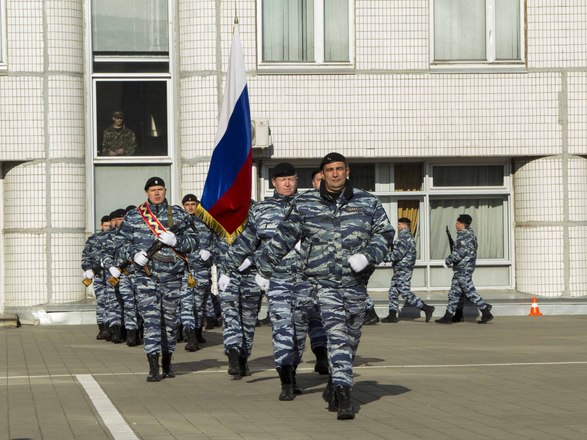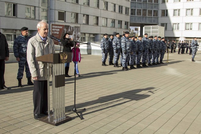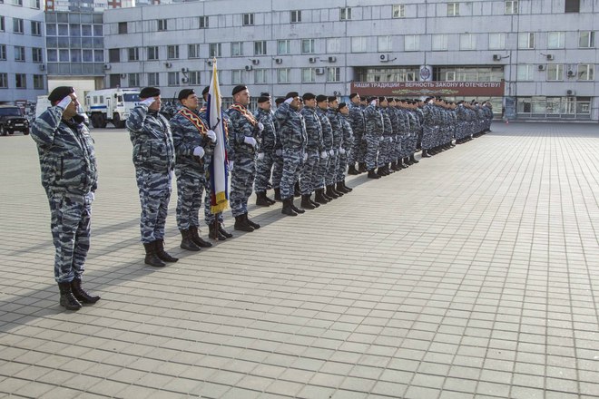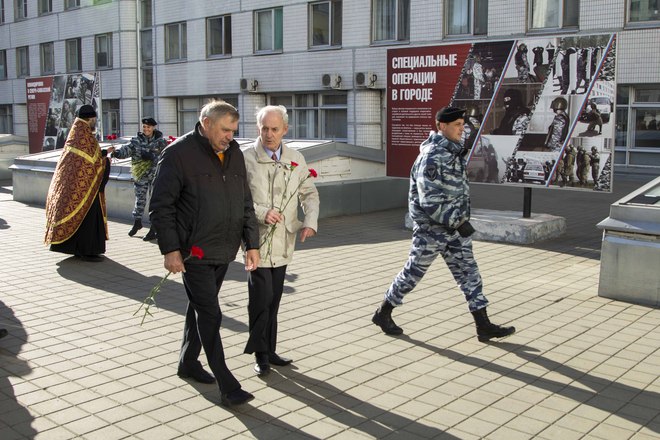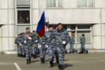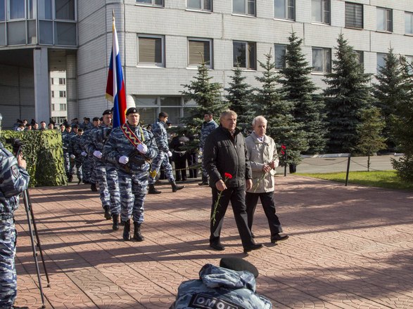 В парадном строю бойцы и офицеры ОМОН прошли по плацу подразделения, после чего почтили память коллег, павших при выполнении служебного долга.