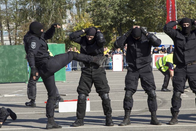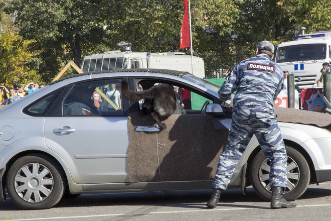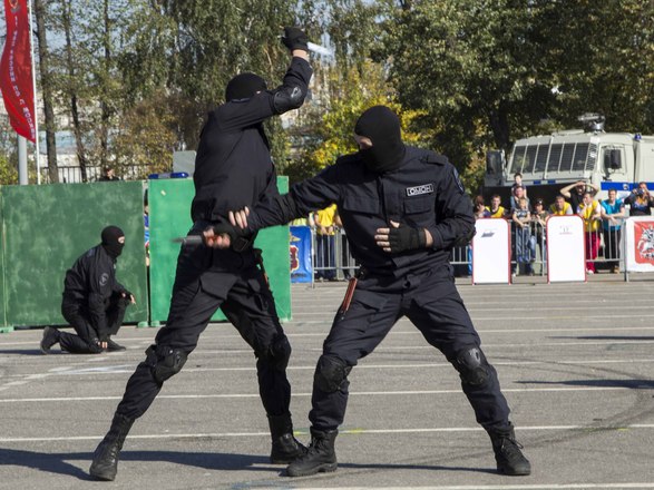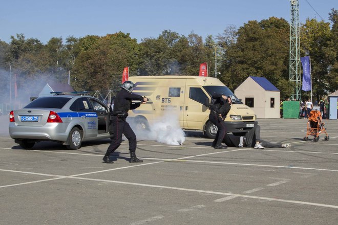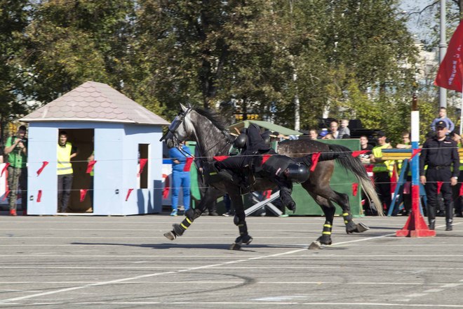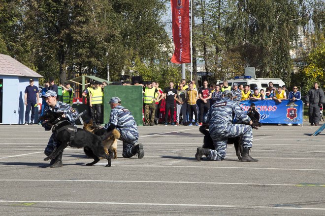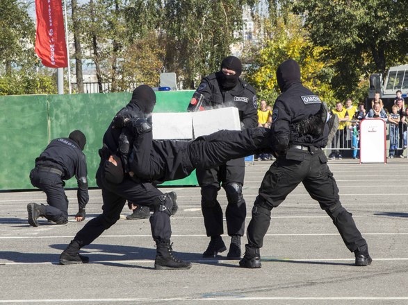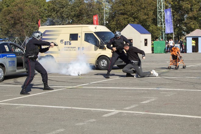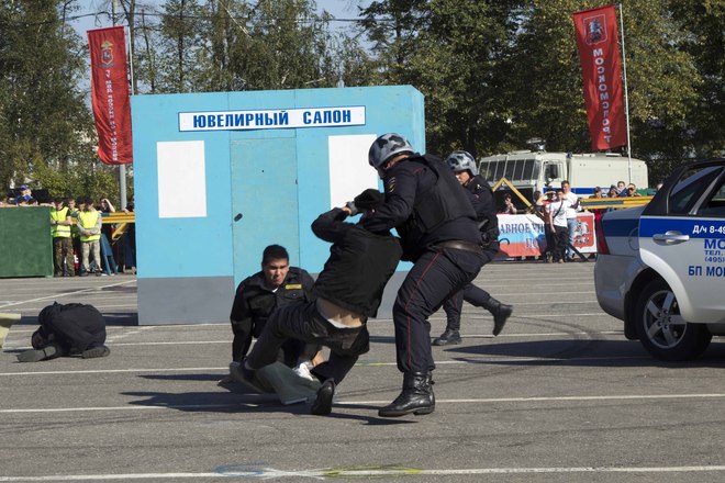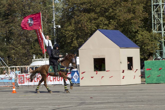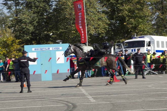 После праздничного парада и плац-концерта духового оркестра прошли показательные выступления сотрудников московского гарнизона полиции, в ходе которых они продемонстрировали свое профессиональное мастерство.