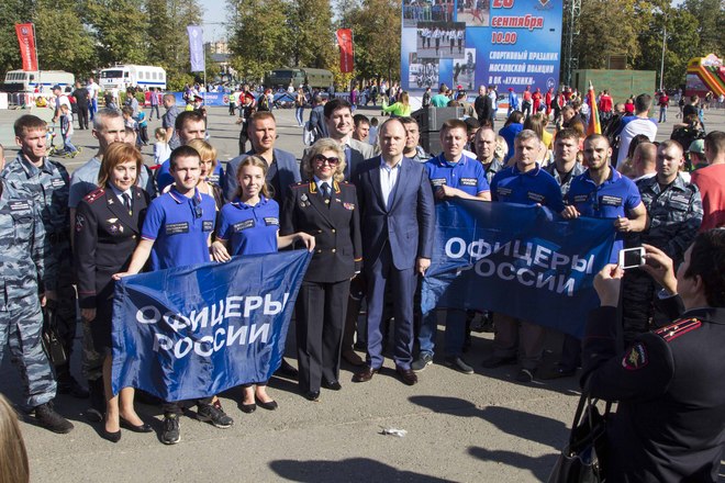 «ОФИЦЕРОВ РОССИИ» на празднике представляли: председатель Президиума Антон Цветков; депутат Госдумы, председатель Совета «ЖЕНЩИНЫ-ОФИЦЕРЫ РОССИИ», генерал-майор полиции Татьяна Москалькова; депутат Мосгордумы, руководитель исполкома регионального отделения в Москве Инна Святенко; член президиума регионального отделения в Москве Юрий Хожайнов, а также члены Центра профилактики правонарушений и Оперативного молодежного отряда.