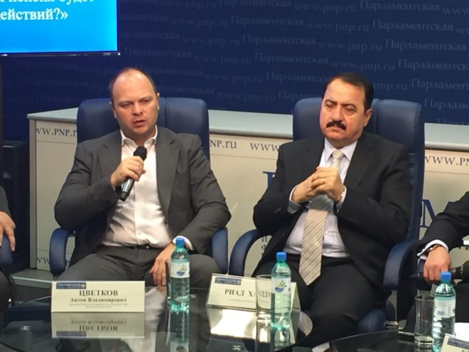В обсуждении приняли участие: председатель Президиума «ОФИЦЕРОВ РОССИИ», председатель Комиссии по безопасности Общественной палаты России Антон Цветков; Чрезвычайный и Полномочный Посол Сирии в РФ Риад Хаддад; руководитель Центра социальной и правовой защиты «ОФИЦЕРОВ РОССИИ» Сергей Ермоленко; председатель Союза ветеранов Сирии Валерий Анисимов.