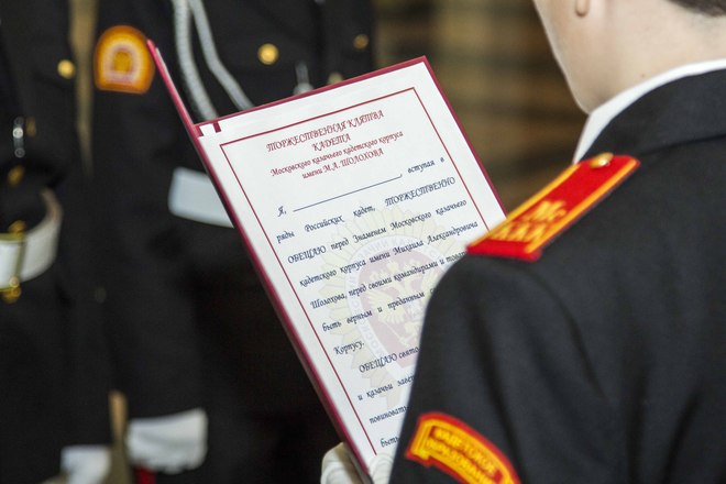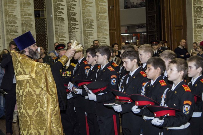 Церемония принятия присяги кадетами Казачьего корпуса
