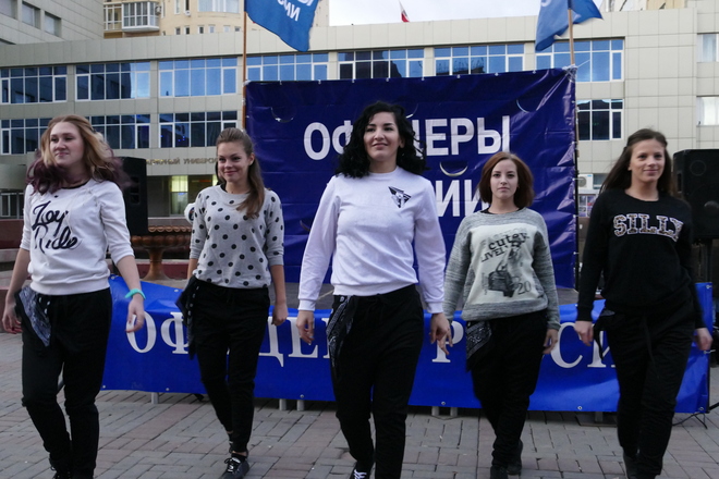 Кульминацией праздника стал танцевальный флеш-моб в русско-народном стиле: добровольцы из числа зрителей исполняли парные танцы под песни «Кадриль», «Хуторянка», «Калинка-малинка» и другие. Победителем этого конкурса стала чемпионка по армрестлингу Наталья Иванова с партнером Владимиром. Завершилось мероприятие песней «Давай, Россия!»