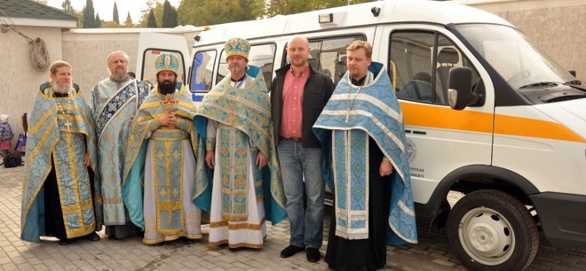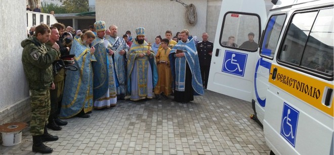 После утренней праздничной литургии автомобиль был освящен и передан храму. Настоятель храма протоиерей о. Сергий (Федоров) выразил благодарность всем россиянам, которые переводили средства на специальный счет для помощи детям Севастополя.