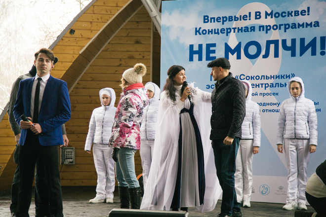 25 ноября в столичном парке культуры и отдыха «Сокольники» прошла социальная информационно-просветительская акция «Жизнь без насилия». Мероприятие было посвящено Международному дню борьбы за ликвидацию насилия в отношении женщин и проводилось совместно с Уполномоченным по правам человека в городе Москве.