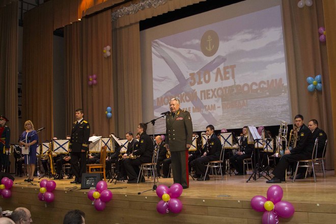27 ноября в Московском доме ветеранов войн и Вооруженных сил РФ состоялось торжественное собрание, посвященное 310-й годовщине создания морской пехоты России. Организатором мероприятия выступила Всероссийская общественная организация морских пехотинцев «Тайфун».