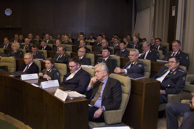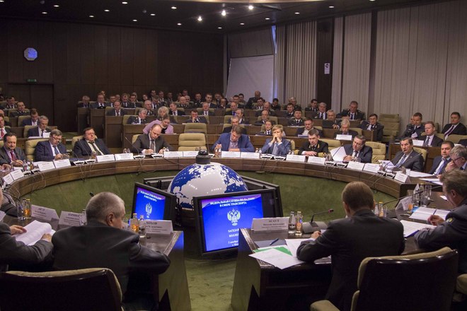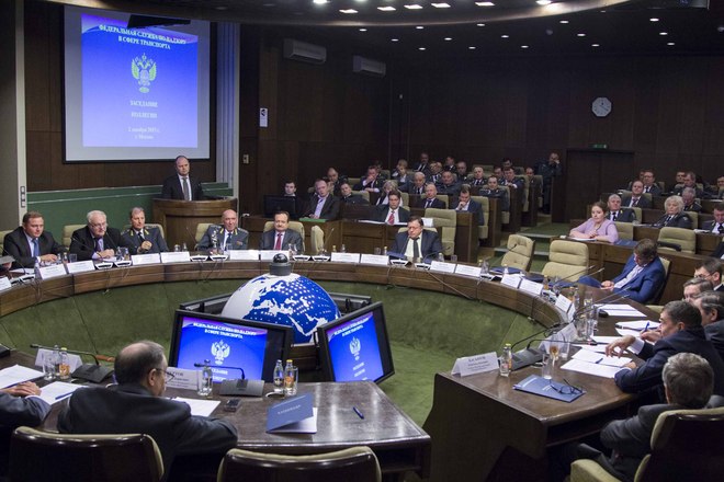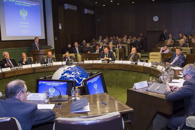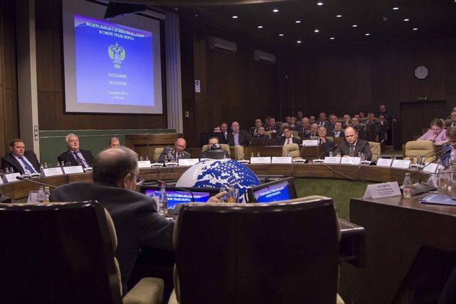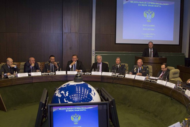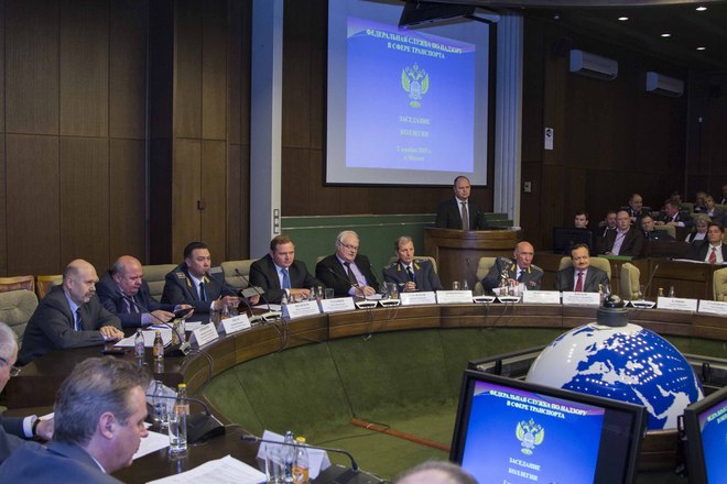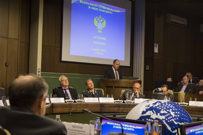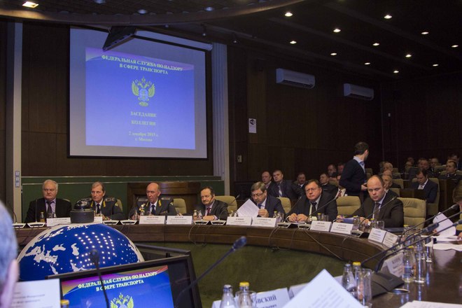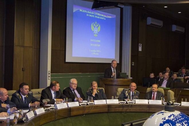 2 декабря состоялась коллегия Федеральной службы по надзору в сфере транспорта. Заседание провел и.о. руководителя Ространснадзора Сергей Сарицкий. В работе приняли участие заместитель министра транспорта РФ Николай Асаул, заместитель министра транспорта РФ Виктор Олерский, председатель Президиума «ОФИЦЕРОВ РОССИИ» Антон Цветков, заместители руководителя Ространснадзора, начальники управлений центрального аппарата и территориальных управлений Ространснадзора, эксперты, представители общественных организаций и предприятий транспортного комплекса.
