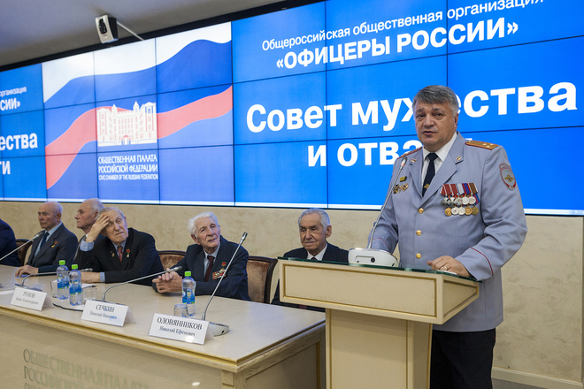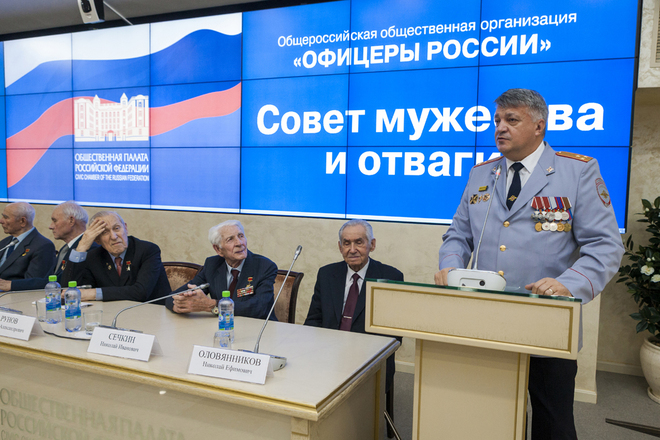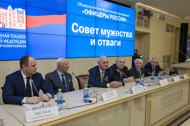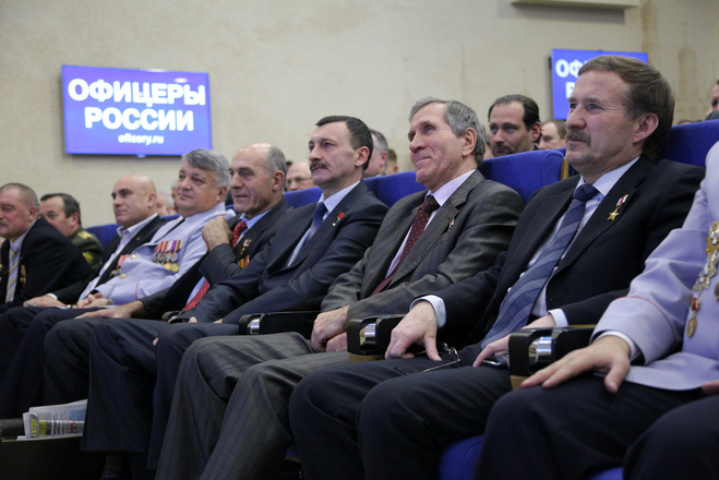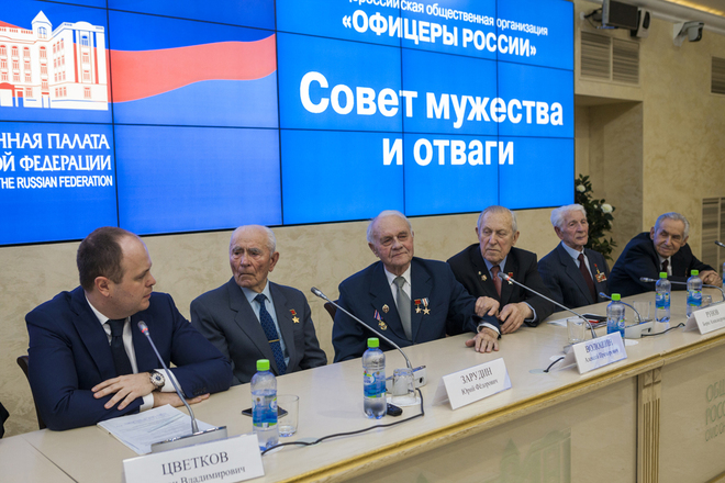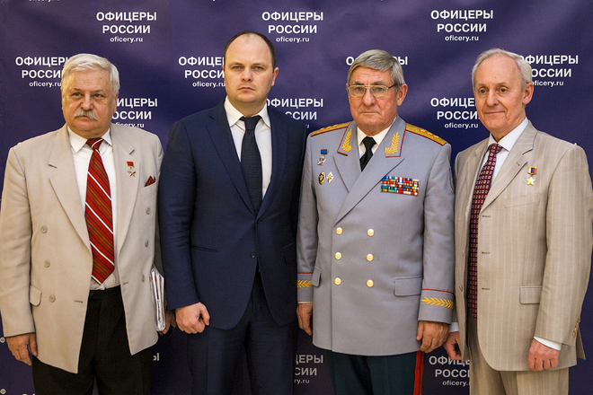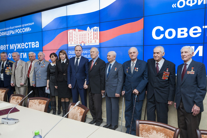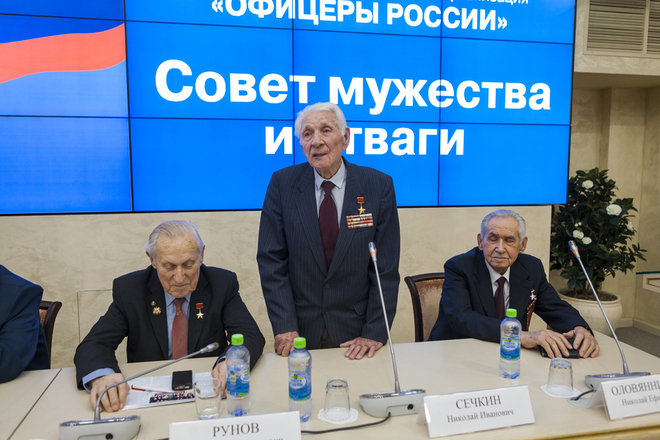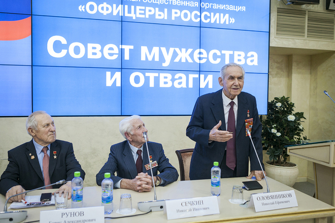 Перед участниками конференции, в частности, выступили Герои Советского Союза: почетный председатель Совета мужества и отваги «ОФИЦЕРОВ РОССИИ» Юрий Зарудин; Борис Рунов; Александр Солуянов; Николай Сечкин, Николай Оловянников; Герои России: председатель Совета мужества и отваги «ОФИЦЕРОВ РОССИИ» Сергей Нефедов и член Президиума нашей организации Александр Маргелов.