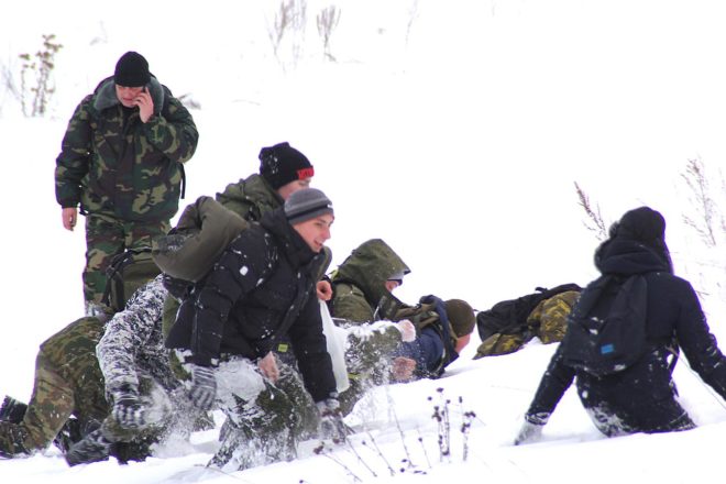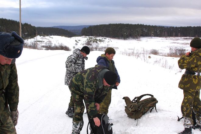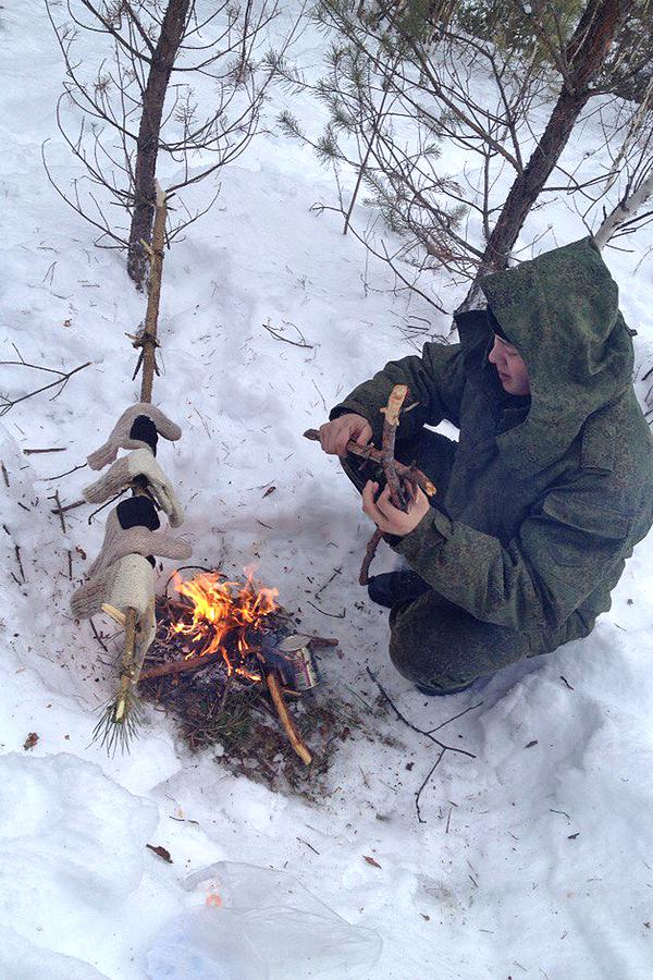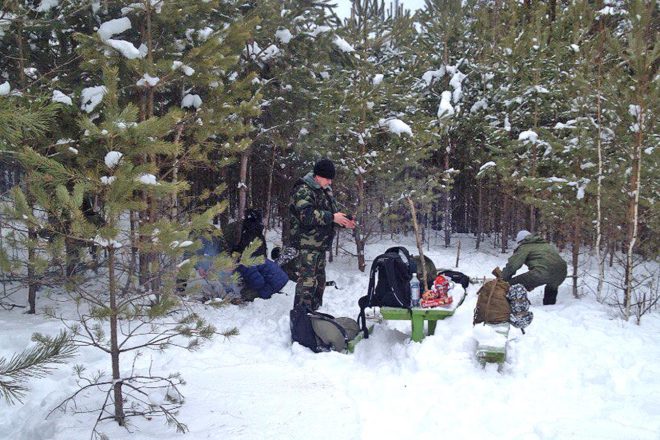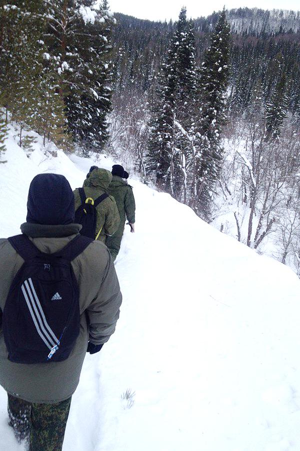 После «теоретической части» ребята отправились в деревню Серпиевка Катав-Ивановского района, где их ждал довольно протяженный пеший маршрут, целью которого стало освоение азов школы выживания в зимнем лесу. Здесь пригодились знания подполковника запаса Евгения Афанасьева. Ребята учились скрытно передвигаться в лесу, разводить костер и готовить пищу.