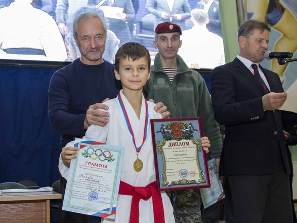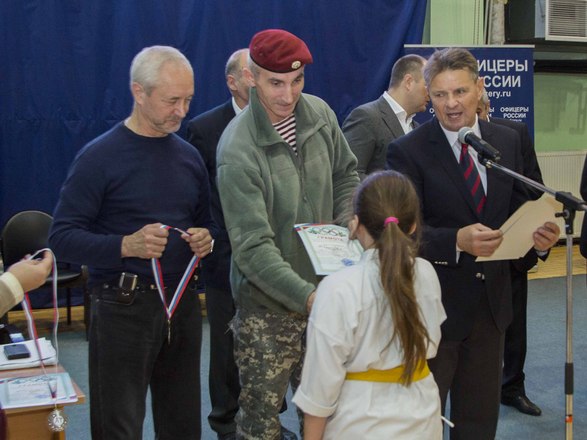 Председатель Высшего совета «Ассоциации Витязей», член Президиума «ОФИЦЕРОВ РОССИИ» Николай Немчинов вручил дипломы на право ношения черных поясов ведущим спортсменам, а президент МАБИ Евгений Герасимов наградил победителей и призеров соревнований почетными дипломами и подарками.