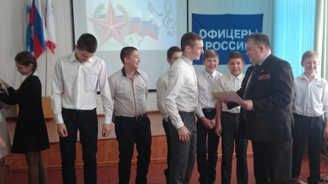 Учащиеся 6-8 классов школы заранее написали сочинение на тему: «Что для вас значит быть победителем». Творческие работы раскрыли многогранность понятия «победитель» – это и ветеран войны, и человек, победивший болезнь или пагубную привычку. Полковник запаса Александр Александров вручил участникам конкурса памятные значки.