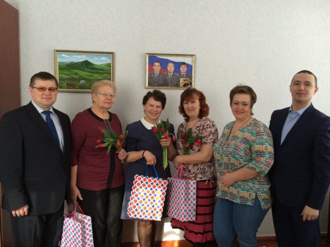 Руководитель исполкома регионального отделения Андрей Спиридонов и члены актива Ольга Зелинская, Вера Яковлева, Ришат Каримов тепло поздравили женщин с наступающим праздником 8 марта, вручили им цветы и подарки.