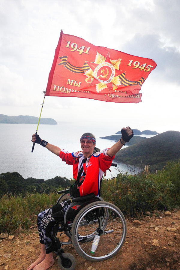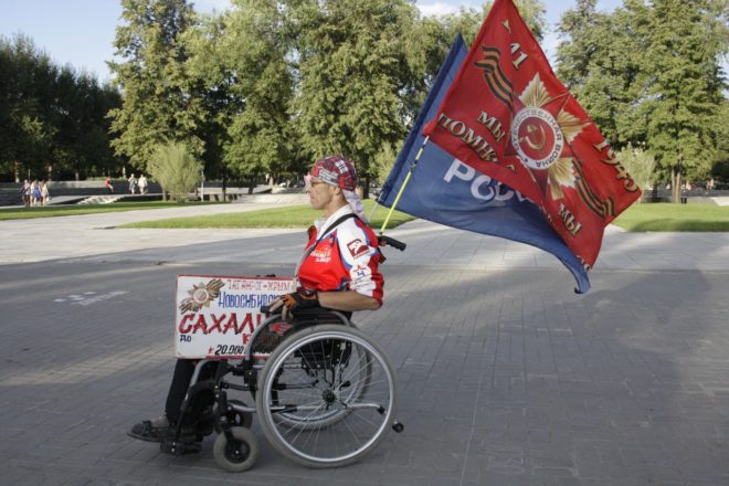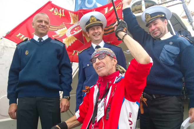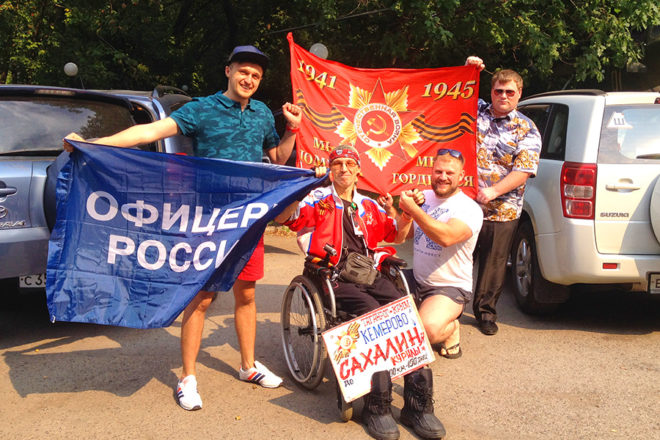 Игорь Скикевич с собой в дорогу взял две дорожные сумки, аптечку, рюкзак с документами, ноутбук, Знамя Победы. Выезжал за город на такси, стоял на трассе, ловил попутки. И так, от города к городу, за 180 дней проехал Игорь от Севастополя до Сахалина, от Черного моря до Тихого океана.