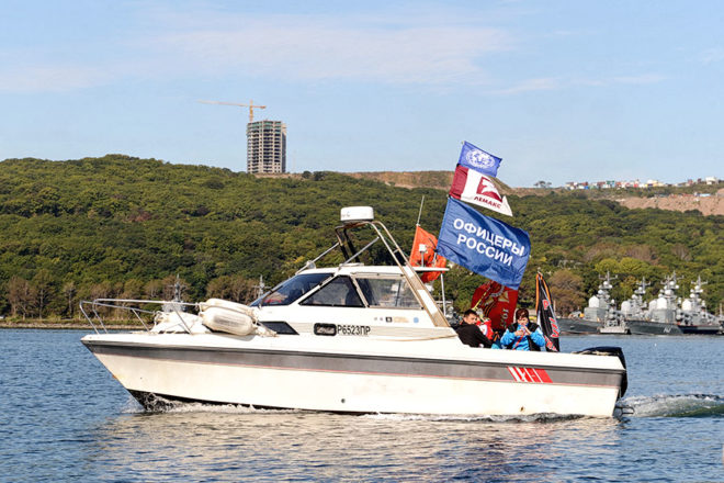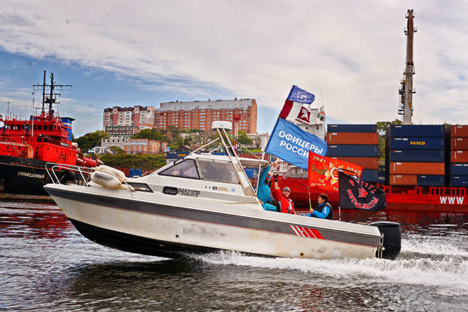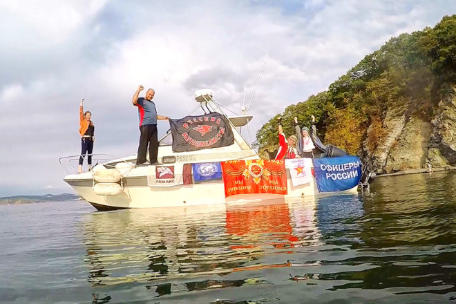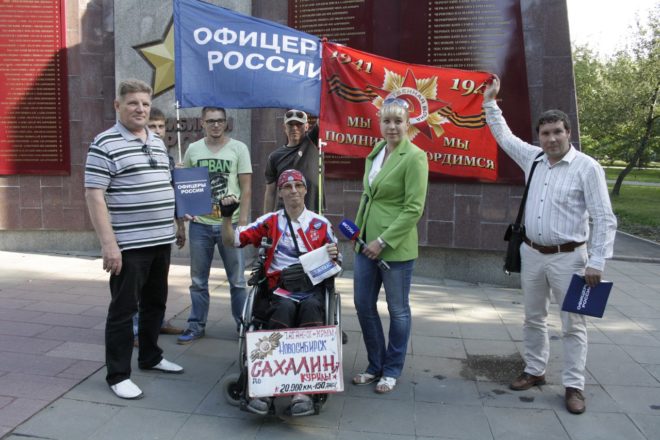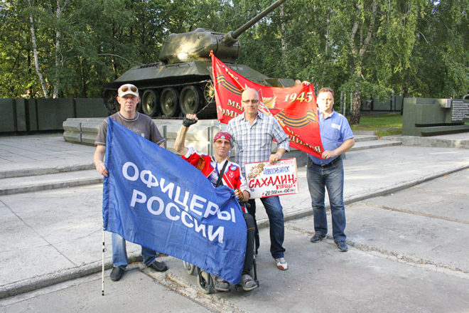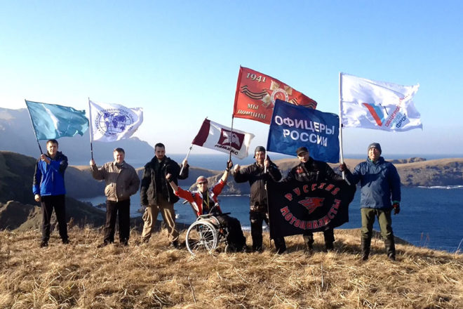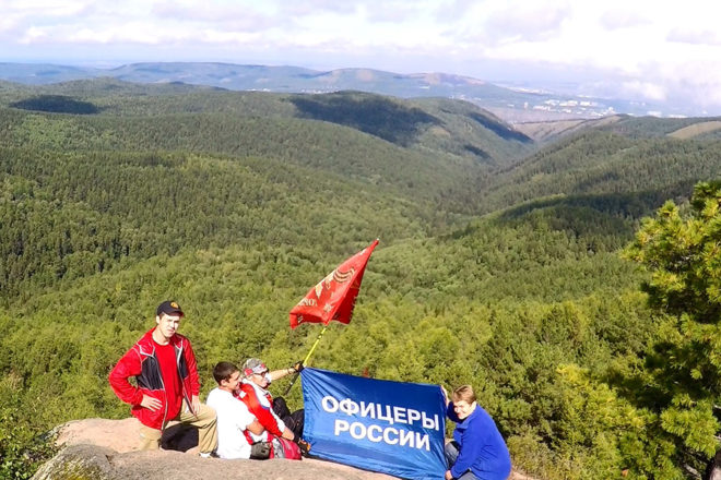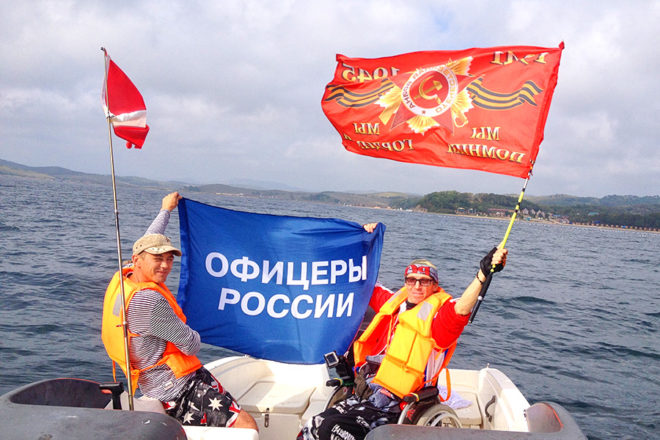 Знамя Победы и флаг организации «ОФИЦЕРЫ РОССИИ» побывали и были подняты на крайней точке страны – мысе Край света (о. Шикотан), в бухте Золотой Рог (Владивосток), на легендарном паруснике «Паллада», фрегате «Надежда», Красноярских столбах, на самом юге Дальнего Востока, дне Японского моря и скале Варяг.