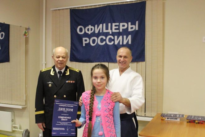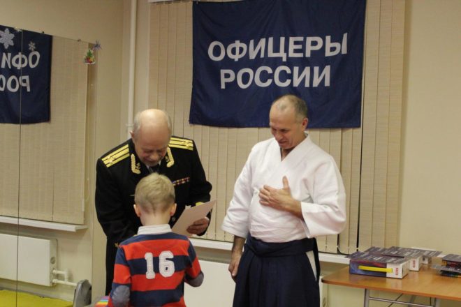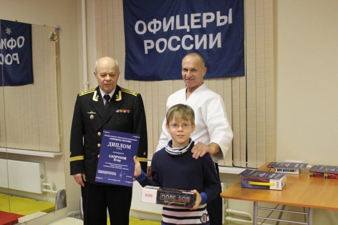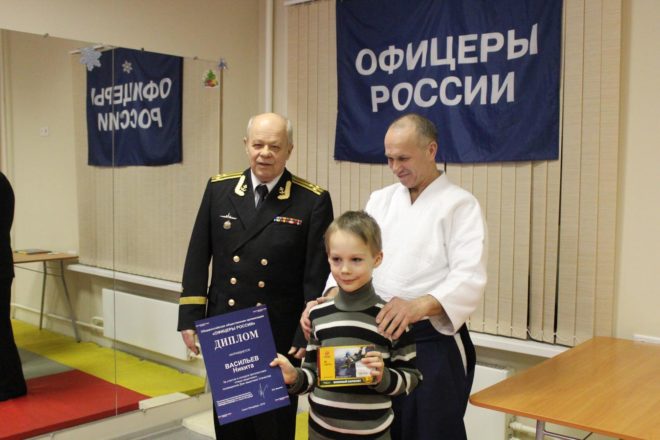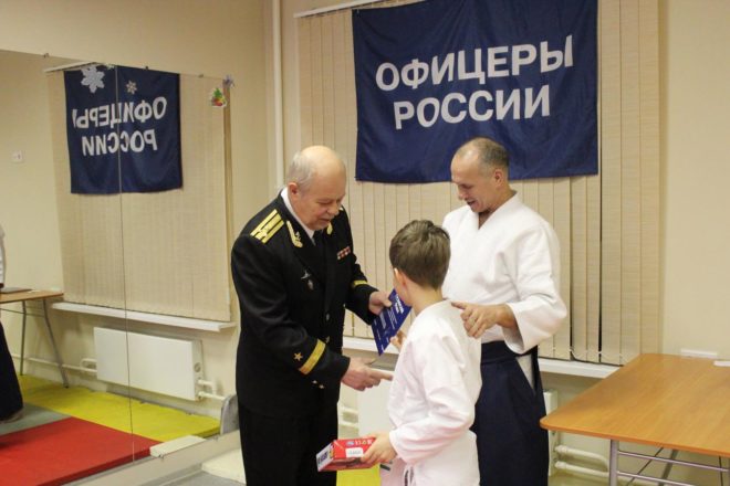 29 февраля состоялось награждение победителей и участников конкурсов. Все были награждены дипломами и подарками. В завершение мероприятия ко всем присутствующим обратился руководитель исполкома регионального отделения «ОФИЦЕРОВ РОССИИ» капитан 1 ранга Игорь Гришков. Он выразил признательность руководителю айкидо-клуба Николаю Аравину за большую работу по патриотическому воспитанию, поблагодарил родителей за то, что они растят юных патриотов страны.